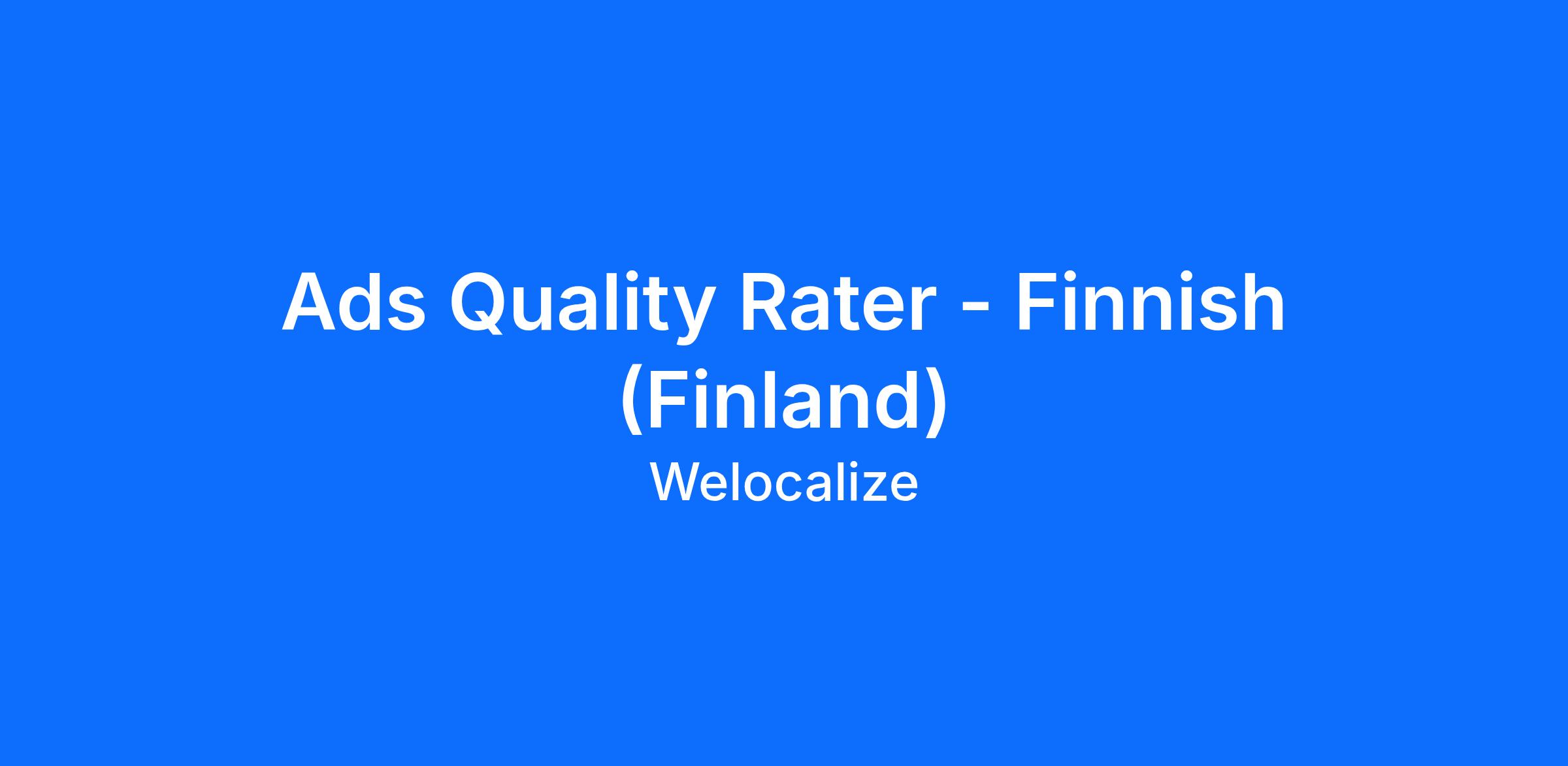 Welo Data etsii suomen kielen taitajia mainosten laadun arviointiprojektiin. Tässä tehtävässä käytät ainutlaatuista verkkopohjaista työkalua hakukonemainosten arvioimiseen projektin ohjeiden mukaisesti. Tehtävä mahdollistaa ammatillisen kehityksen, sillä työskentelet kiinnostavien projektien parissa, jotka tukevat ammatillista oppimista ja kasvua. Saat myös kokemusta monikulttuurisesta ja kansainvälisestä tiimityöskentelystä erilaisten asiakirjojen ja sisältötyyppien parissa.