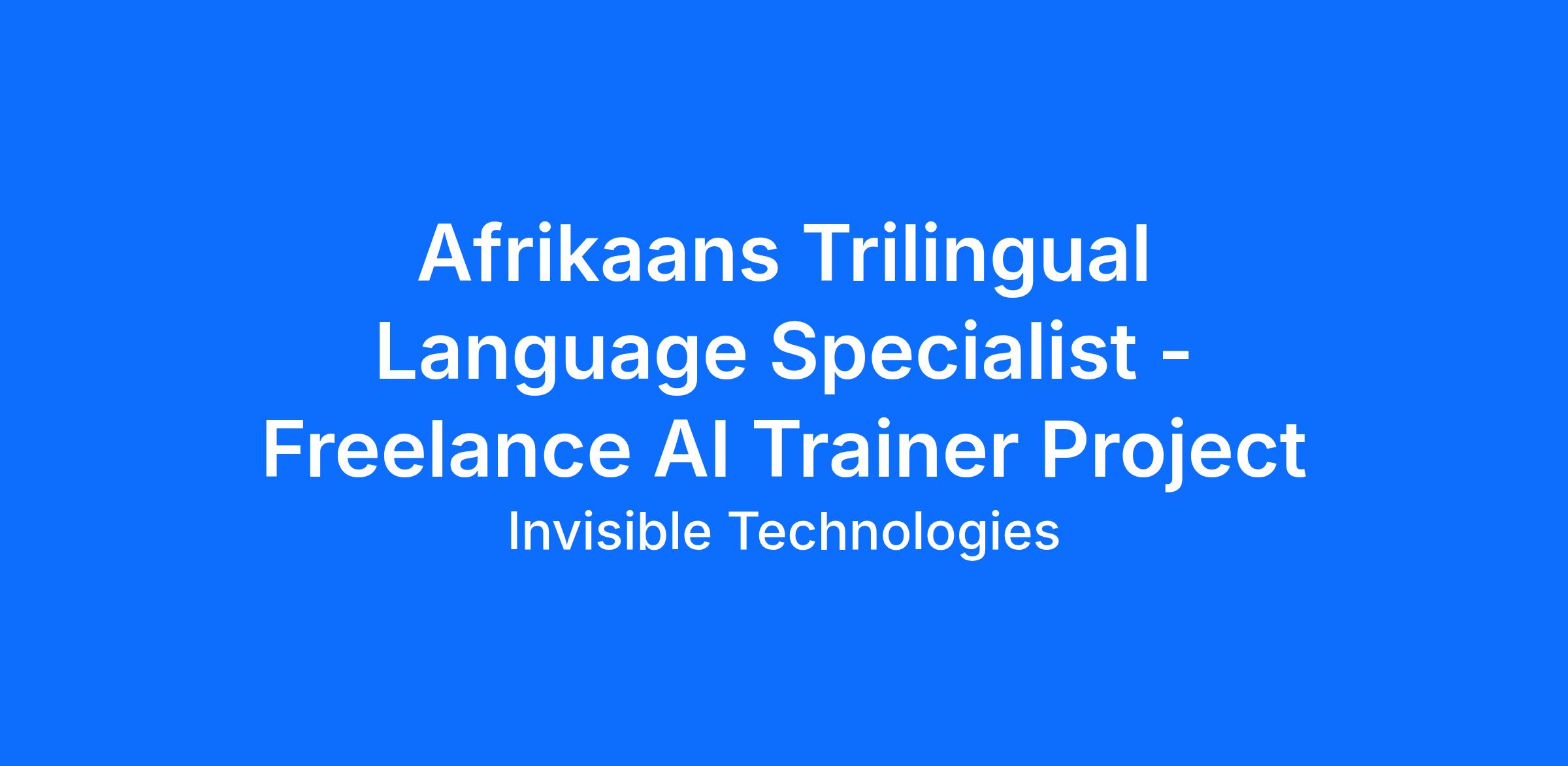 Fluency in Afrikaans and English, plus proficiency in at least one additional language, is required. Prior experience in translation, linguistics, content evaluation, or AI training is strongly preferred. Clear communication skills, attention to detail, and the ability to articulate linguistic nuances across languages are essential.
