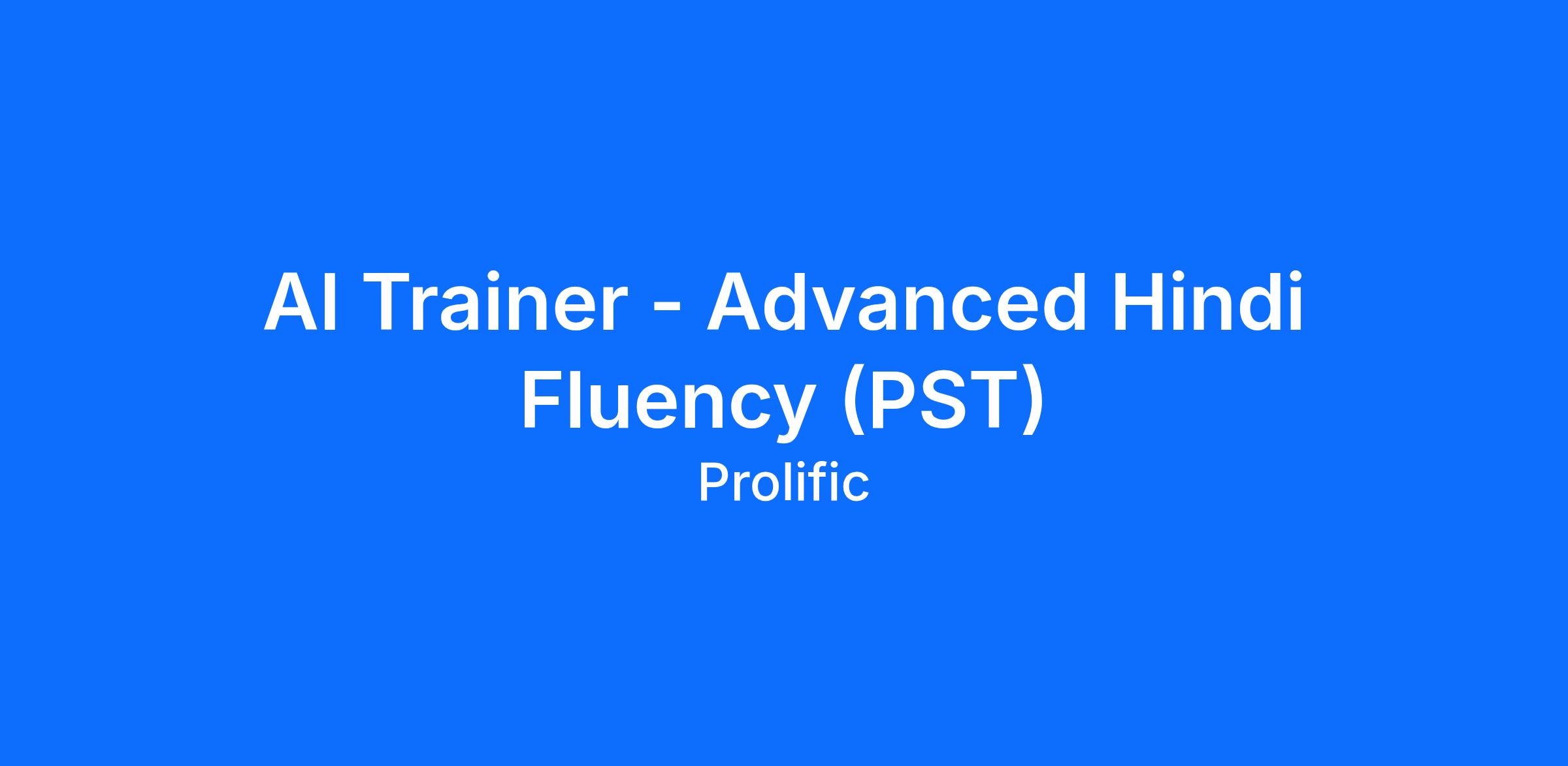 We’re looking for Advanced Hindi Speakers to help train and evaluate cutting-edge AI models. If you have the necessary experience, we’ll send you a quick test to assess your skills and suitability for AI tasks. If successful, you’ll be invited to join Prolific as a Domain Expert participant, where you’ll get paid to train and evaluate powerful AI models.