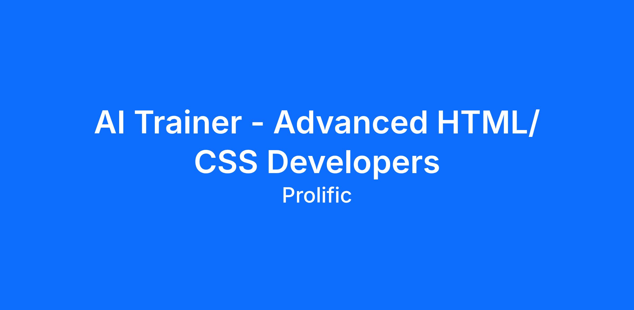 We’re looking for HTML/ CSS Developers to help train and evaluate cutting-edge AI models. If you have the necessary experience, we’ll send you an assessment to test your skills and suitability for AI tasks. If successful, you’ll be invited to join Prolific as a Domain Expert participant, where you’ll get paid to train and evaluate powerful AI models.
