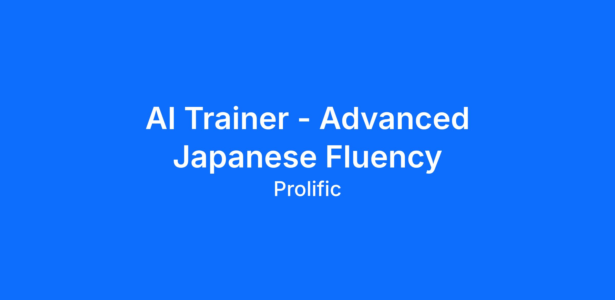 We’re looking for Advanced Japanese Speakers to help train and evaluate cutting-edge AI models. If you have the necessary experience, we’ll send you a quick test to assess your skills and suitability for AI tasks. If successful, you’ll be invited to join Prolific as a Domain Expert participant, where you’ll get paid to train and evaluate powerful AI models.