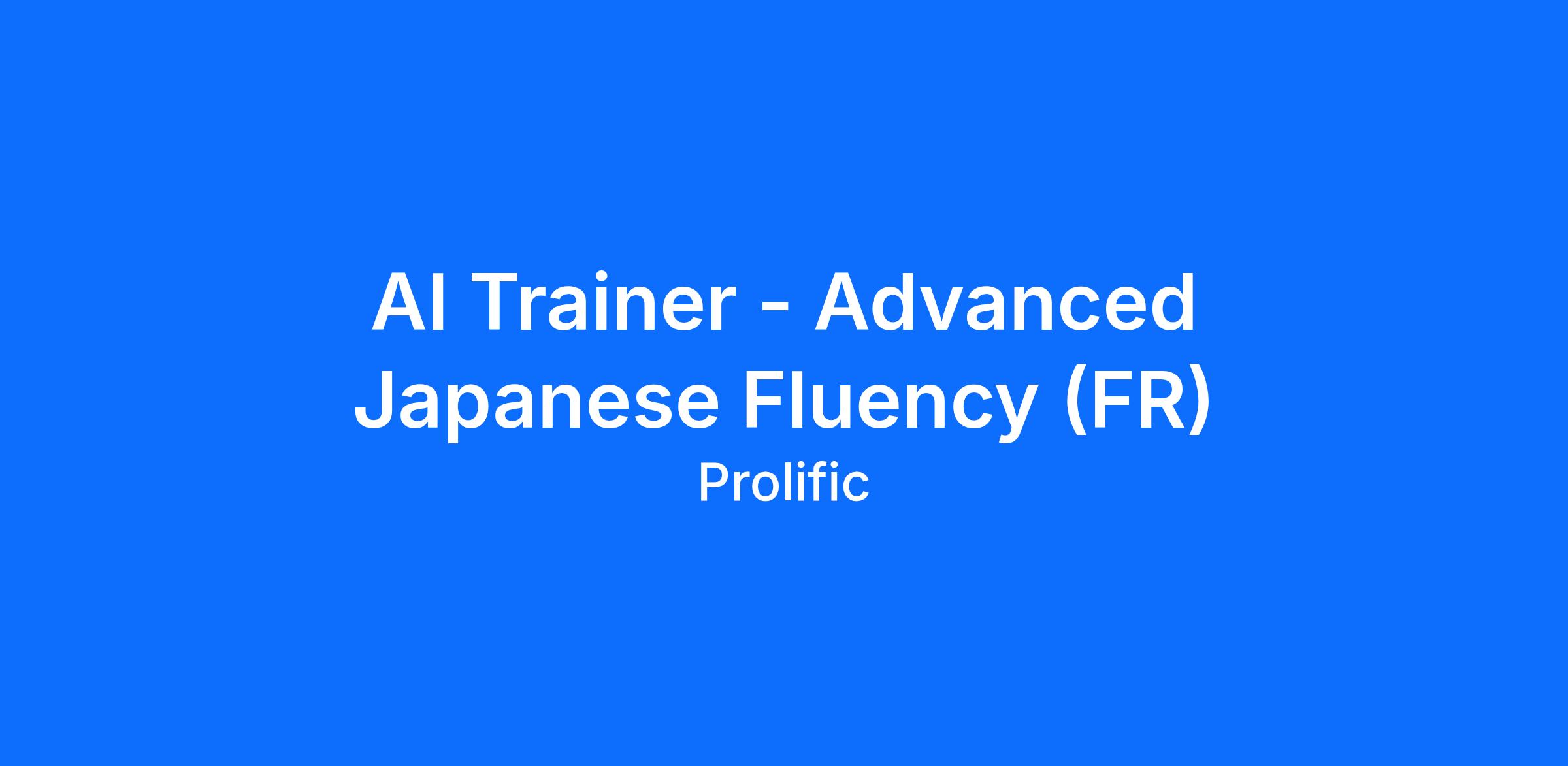 We’re looking for Advanced Japanese Speakers to help train and evaluate cutting-edge AI models. If you have the necessary experience, we’ll send you a quick test to assess your skills and suitability for AI tasks. If successful, you’ll be invited to join Prolific as a Domain Expert participant, where you’ll get paid to train and evaluate powerful AI models.