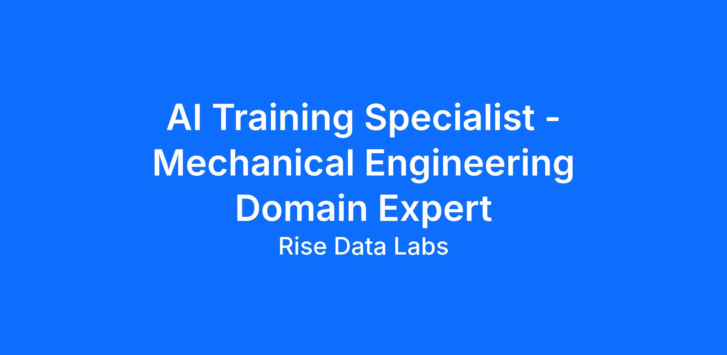 As an AI Training Specialist specializing in Mechanical Engineering, you will play a critical role in enhancing the performance of AI models through data annotation, labeling, and validation. You will leverage your domain expertise to ensure the accuracy and relevance of AI-generated content across various projects.