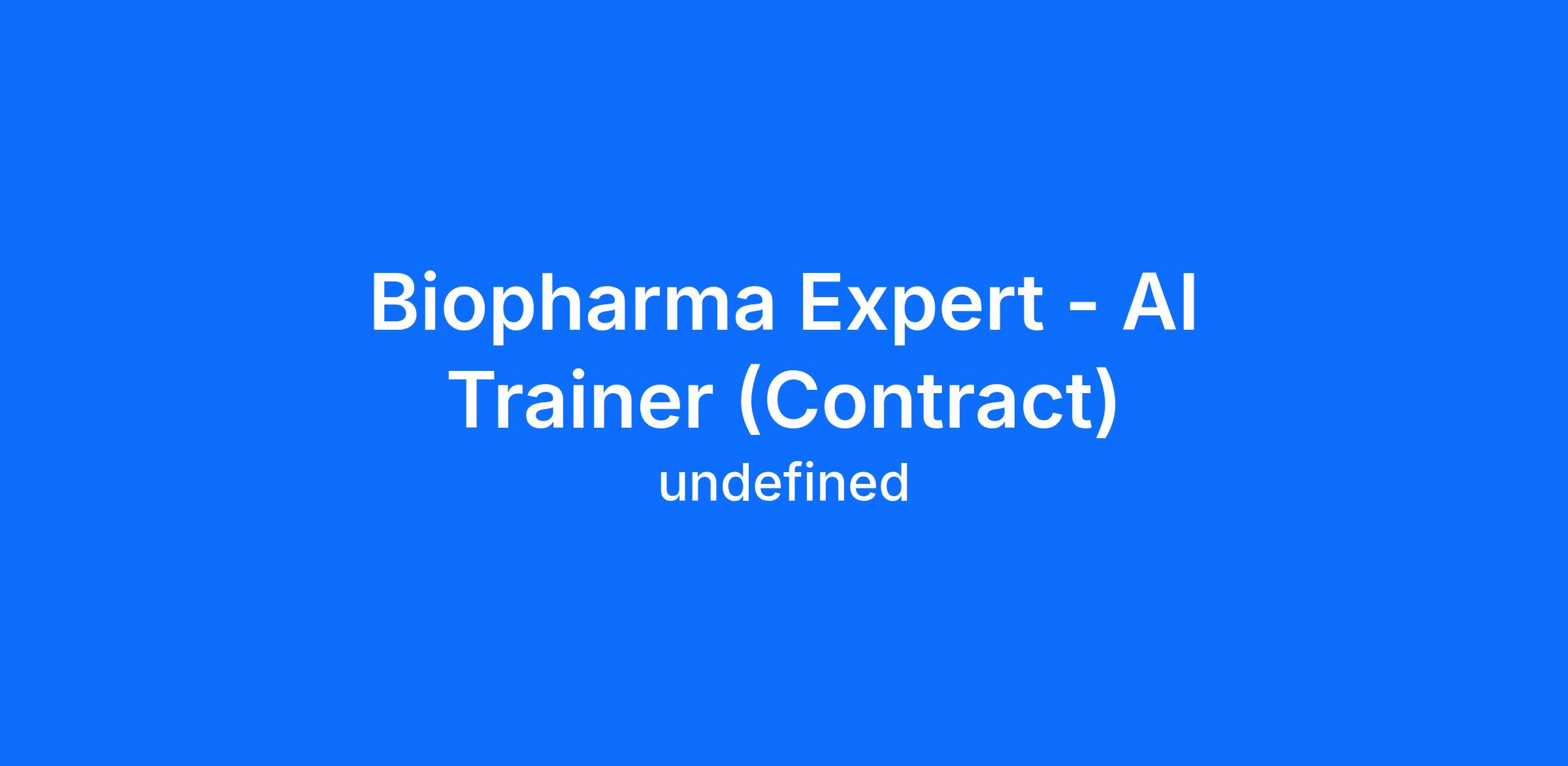 Candidates must hold a PhD in Biopharmaceutical Sciences, Pharmaceutical Sciences, Biomedical Sciences, Chemical Biology, Immunology, Molecular Biology, or a closely related discipline.Demonstrated doctoral-level expertise is required in one or more of the following areas:Genomics & Genetic EngineerinProtein & Antibody EngineeringRNA Therapeutics & Expression DesignSynthetic Biology & Whole-Cell / Systems ModelingDrug Discovery, ADMET, Toxicology & Chemistry-Driven DiscoveryImmunology & Vaccine DevelopmentPharmaceutical / Big Pharma Industry ExperienceCandidates should demonstrate rigorous scientific training, deep domain expertise, and applied experience aligned with real-world biopharmaceutical research and development practices.No prior AI or technical experience is required.