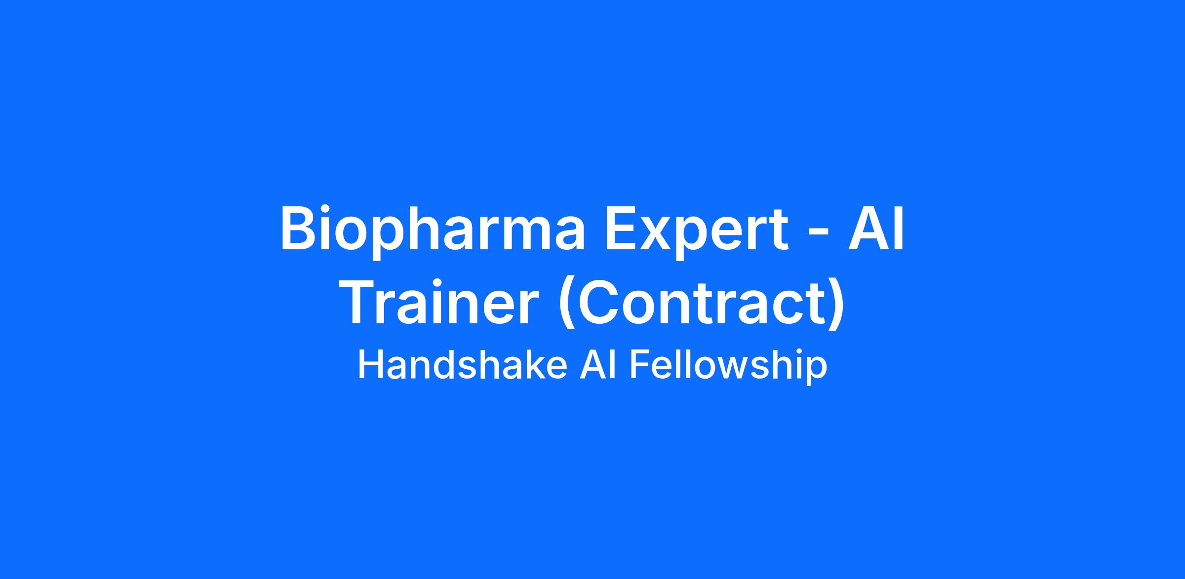 This project involves leveraging your expertise as a Biopharmaceutical PhD to design scientifically rigorous, industry-relevant prompts and evaluate AI-generated responses for technical accuracy, sound scientific reasoning, clarity, and alignment with real-world biopharmaceutical research and development practices.Status: Independent contractor (not a full-time employee role)Location: Fully remote; work from anywhere with a reliable internet connection and access to a desktop or laptop computerSchedule: Flexible and asynchronous, with no minimum hour requirement. Many contributors work approximately 5–20 hours per week when assigned to an active projectDuration: The Handshake AI program runs year-round, with projects opening periodically across different areas of expertise. Placement depends on current project needs, with opportunities to be considered for future projects as they become available