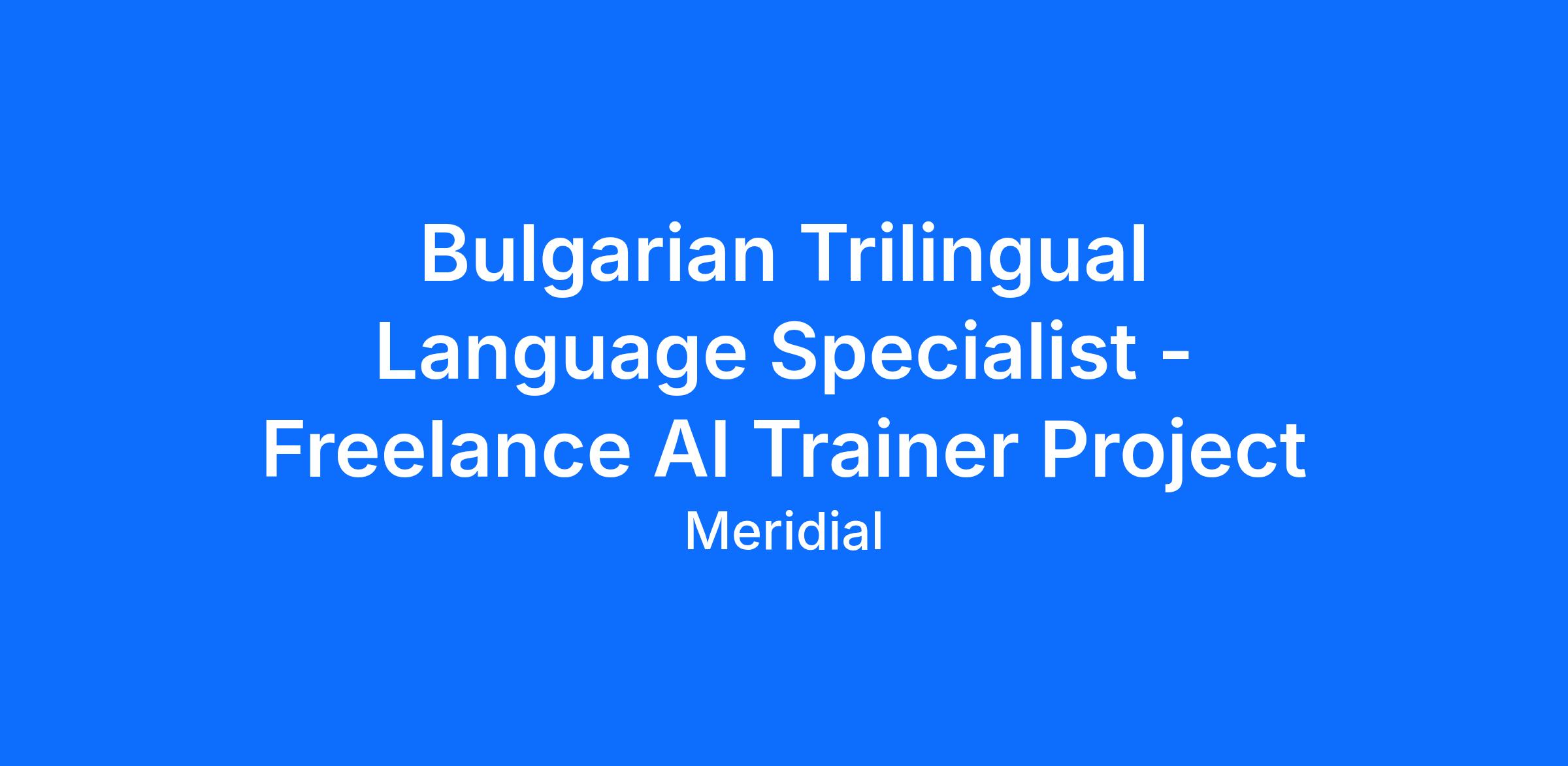 Job title: Bulgarian Trilingual Language Specialist – AI Trainer