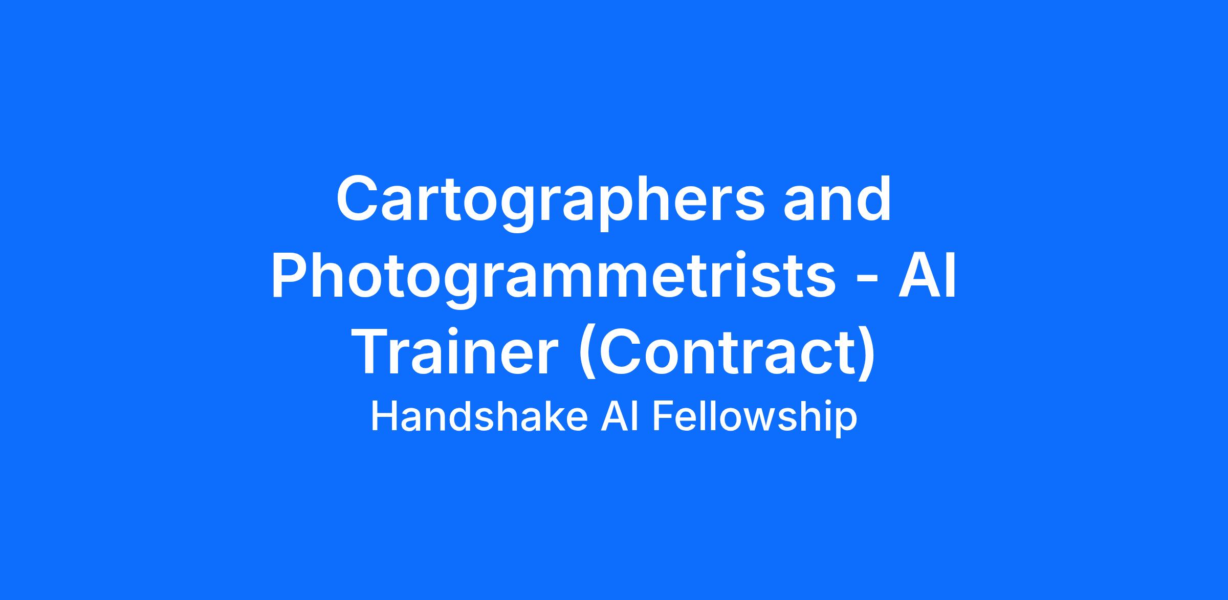 You have at least 4 years of professional experience in one or more of the following types of work.The examples below reflect the types of real-world responsibilities that you might have had in your role that will give you the context needed to evaluate and train high-quality AI modelsCompile and analyze data from aerial photographs, surveys, and satellite images to create and revise detailed maps and charts, ensuring accuracy and completeness. Utilize precision stereoplotting apparatus and computer graphics for delineating topographic and cultural features. Employ drone technology for high-resolution data collection and update digital databases.You’re able to participate in asynchronous work in partnership with leading AI labs.Application ProcessCreate a Handshake accountUpload your resume and verify your identityGet matched and onboarded into relevant projectsStart working and earning