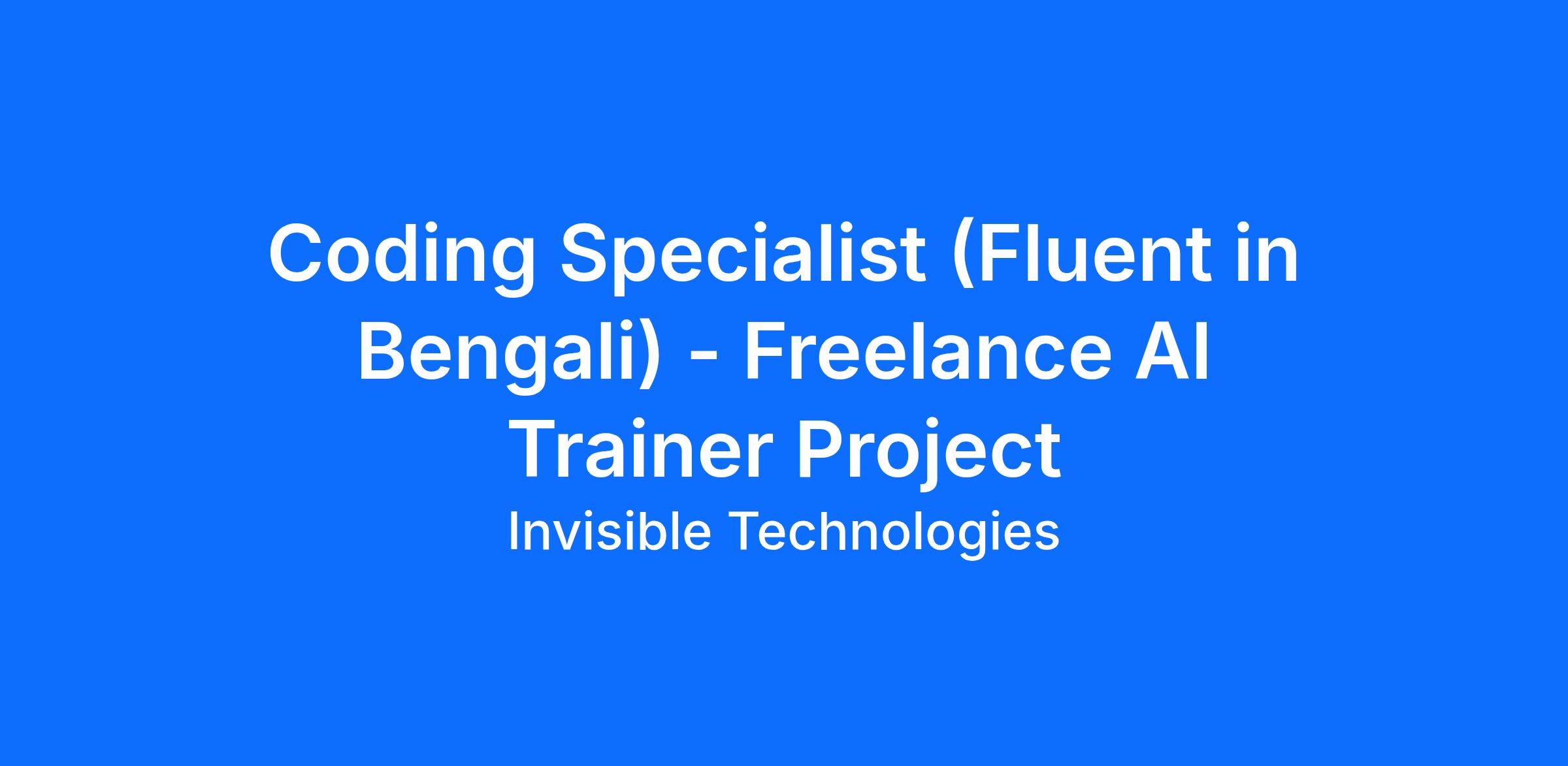 Job title: Coding Specialist - (Fluent in Bengali) - AI Trainer