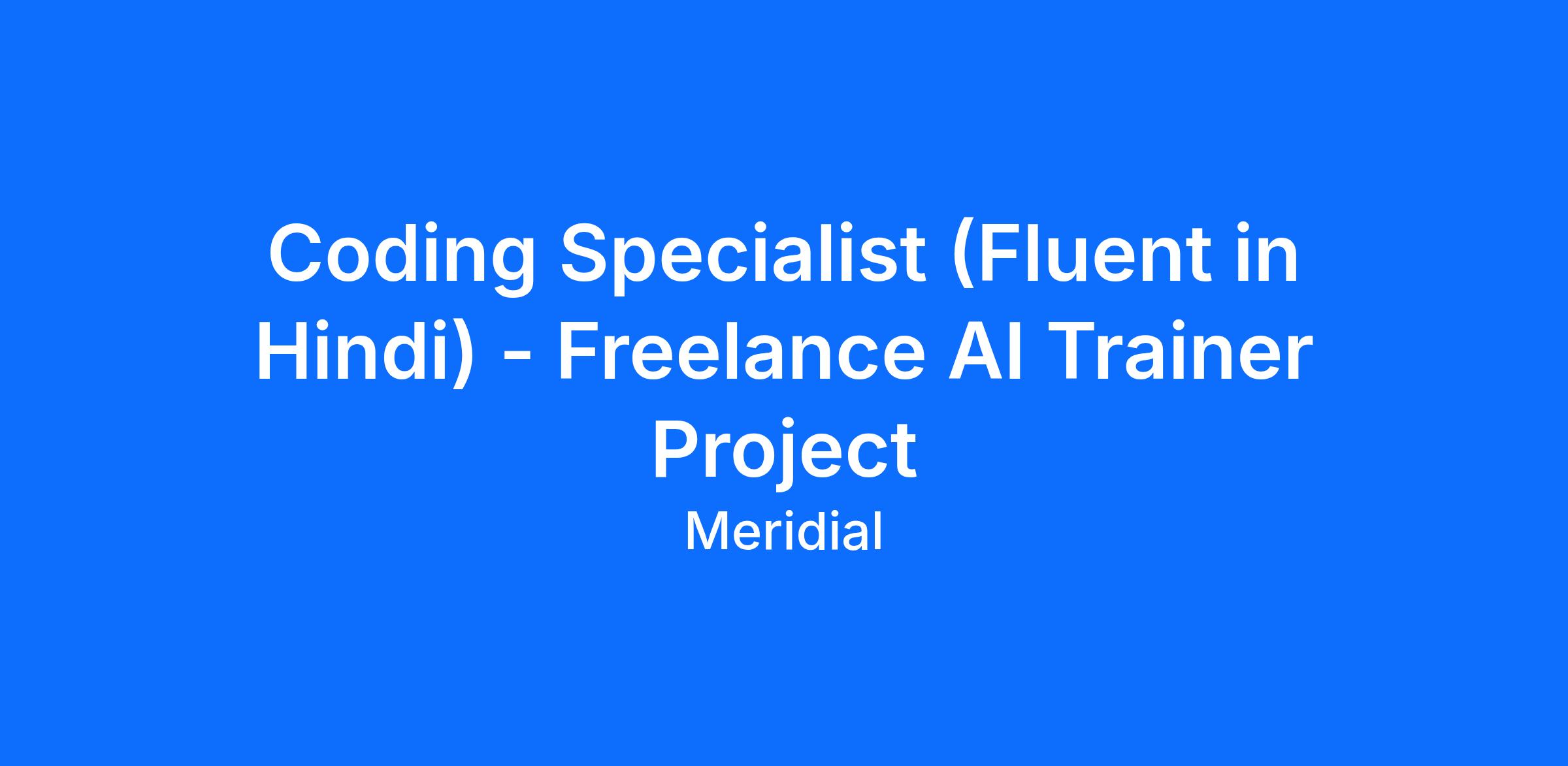 Job title: Coding Specialist (Fluent in Hindi) - AI Trainer