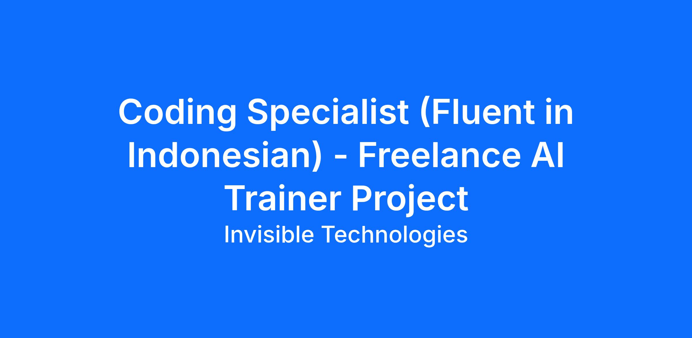 Job title: Coding Specialist - (Fluent in Indonesian) - AI Trainer