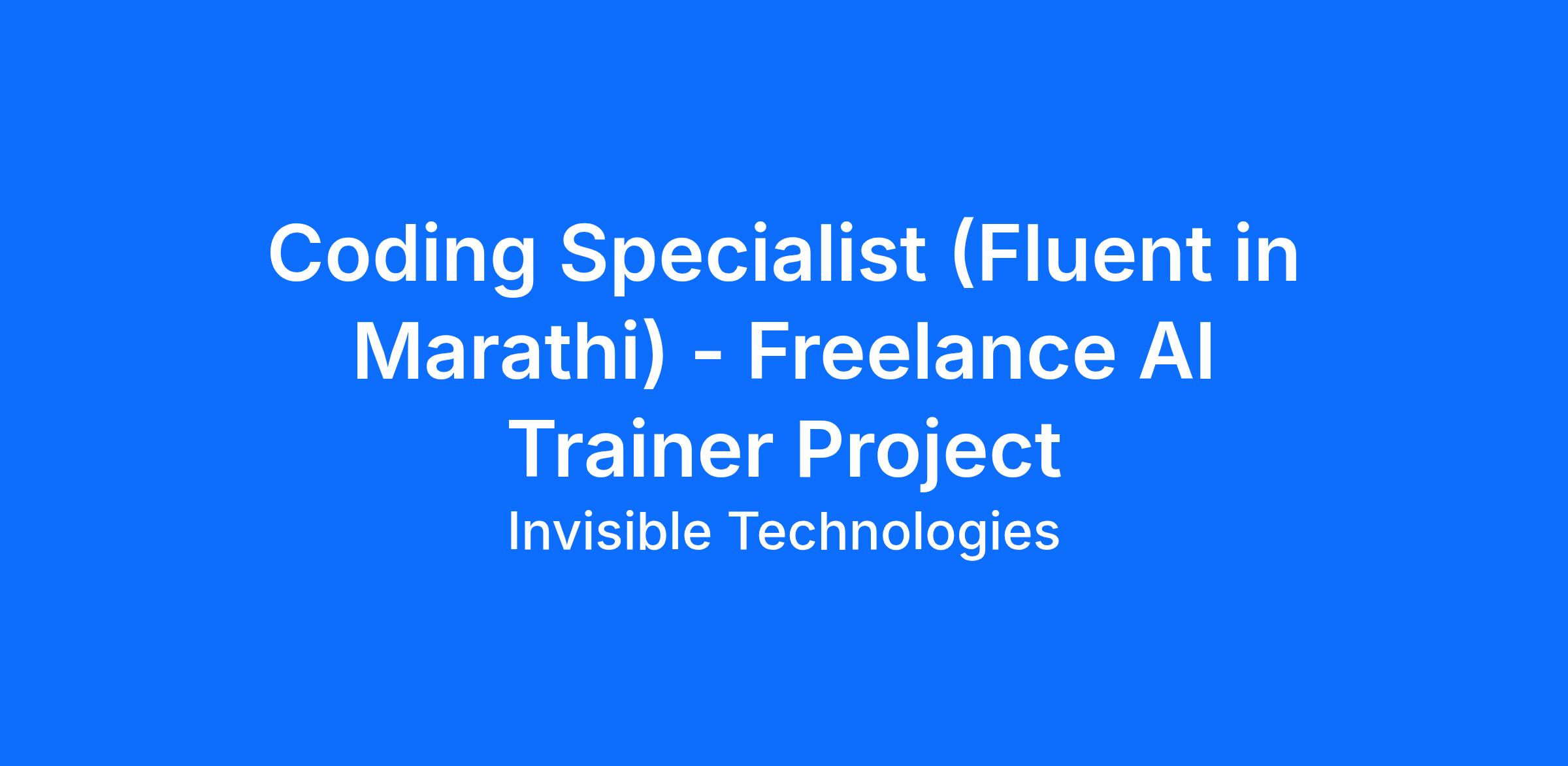 Coding Specialist (Fluent in Marathi) - Freelance AI Trainer Project