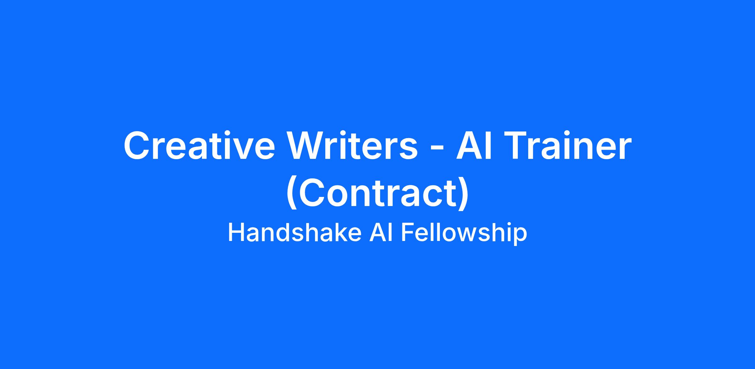 Handshake is seeking experienced Creative Writers and writing professionals to support AI research through flexible, hourly contract work. This is not a traditional full-time editorial, publishing, or agency role. You’ll use your real-world writing, storytelling, and editing experience to evaluate AI-generated content and provide feedback that helps AI better understand creative writing techniques, narrative structure, voice, tone, and professional language.This is an ongoing, project-based opportunity that can be done alongside your primary employment.