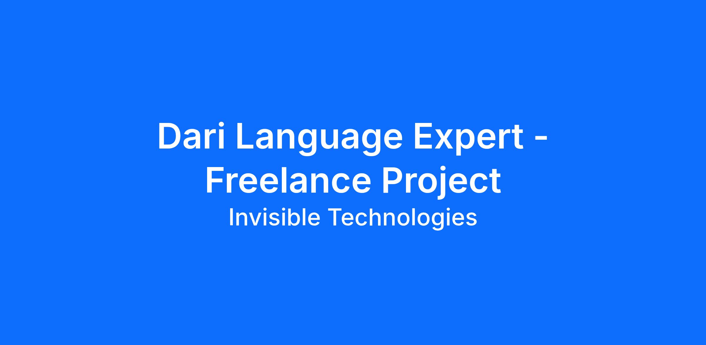 Ready to turn your Dari expertise into the knowledge base for tomorrow’s AI? Apply today and start teaching the model that will teach the world.