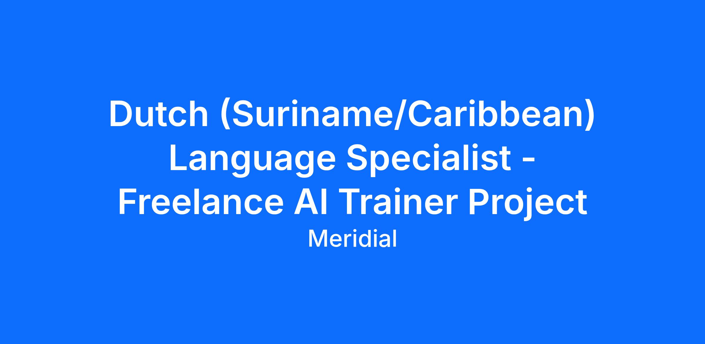 Job title: Dutch (Suriname/Caribbean) Language Specialist - AI Trainer