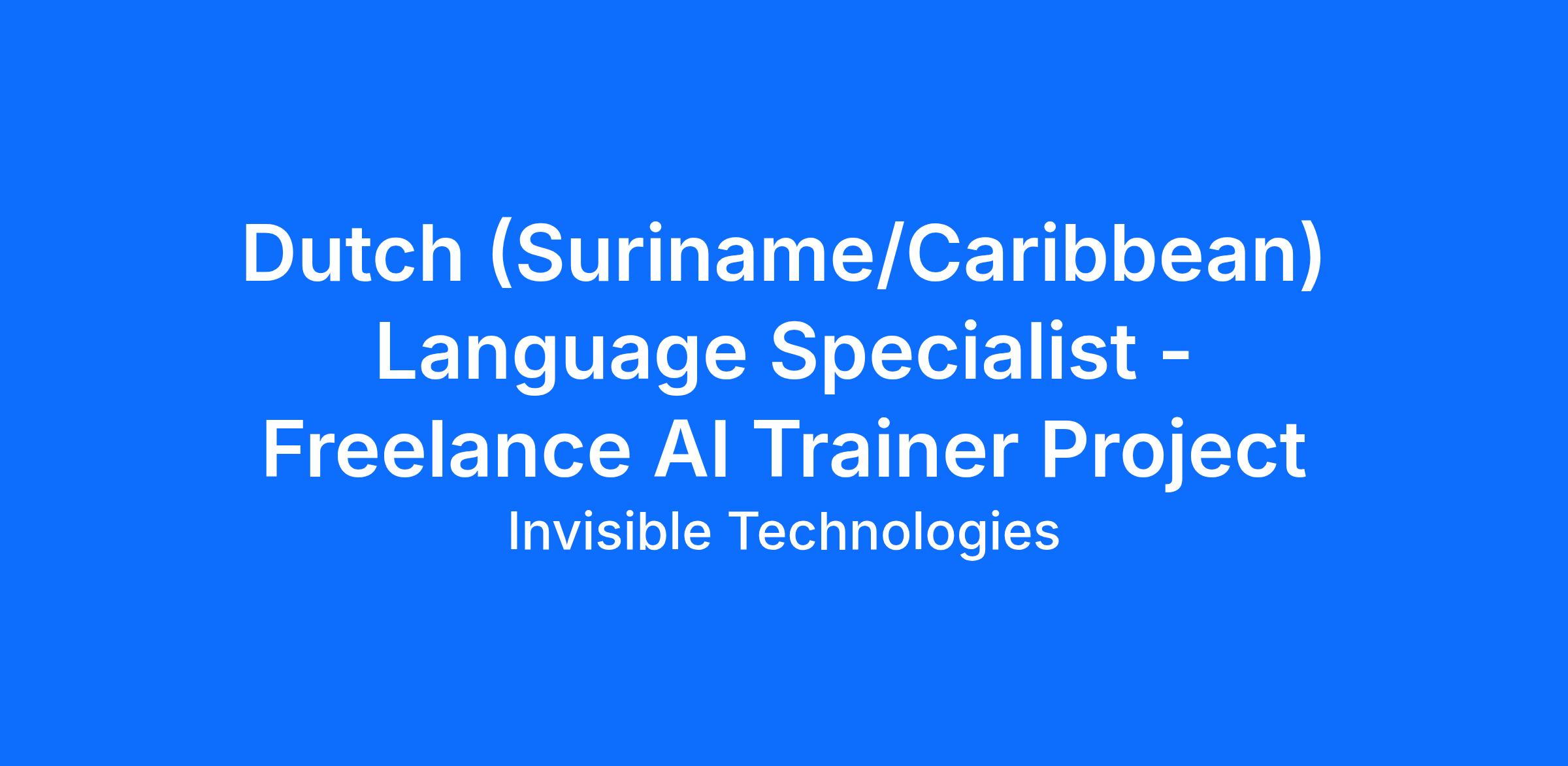 Job title: Dutch (Suriname/Caribbean) Language Specialist - AI Trainer