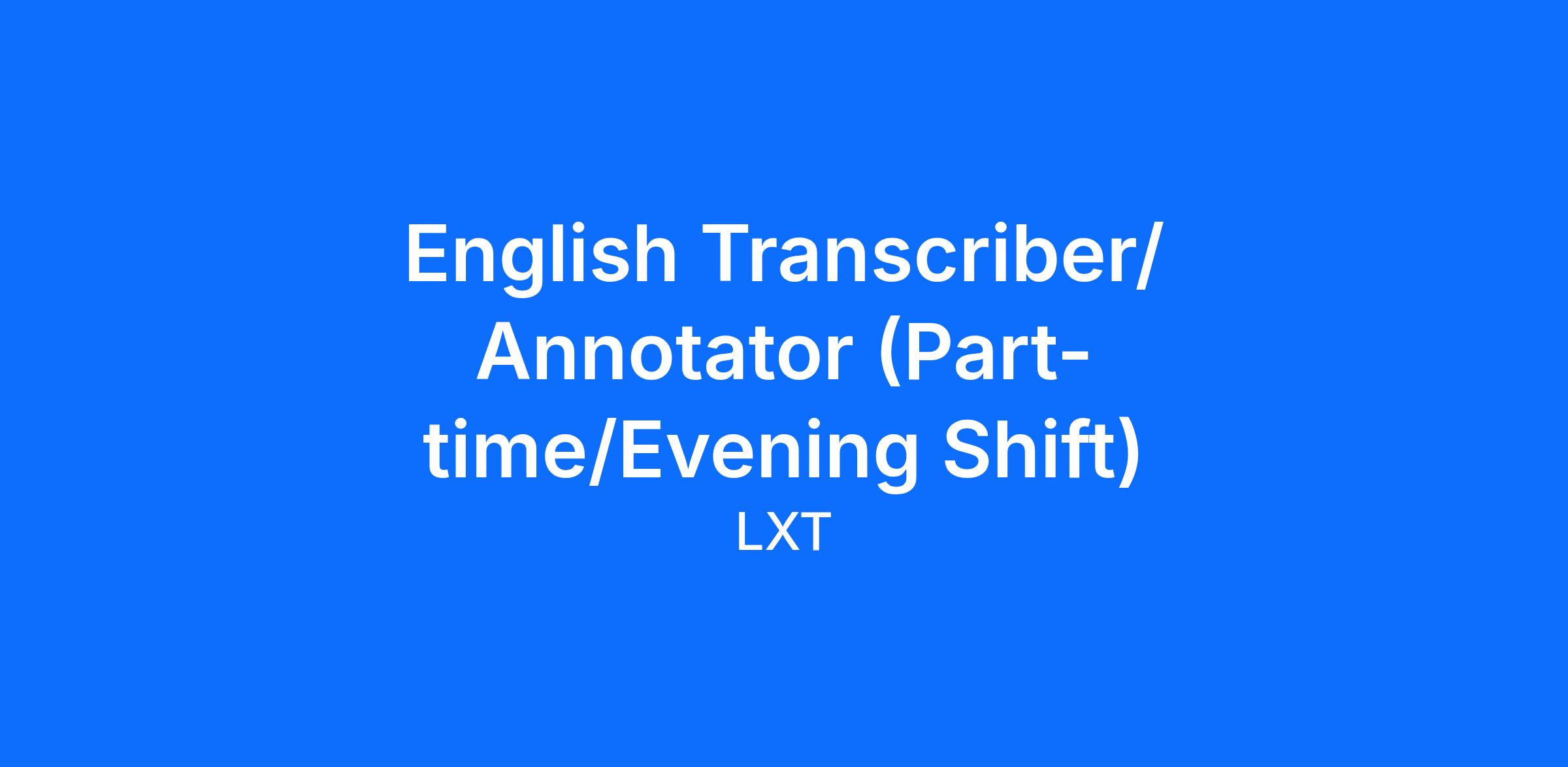 English Transcriber/ Annotator (Part-time/Evening Shift)