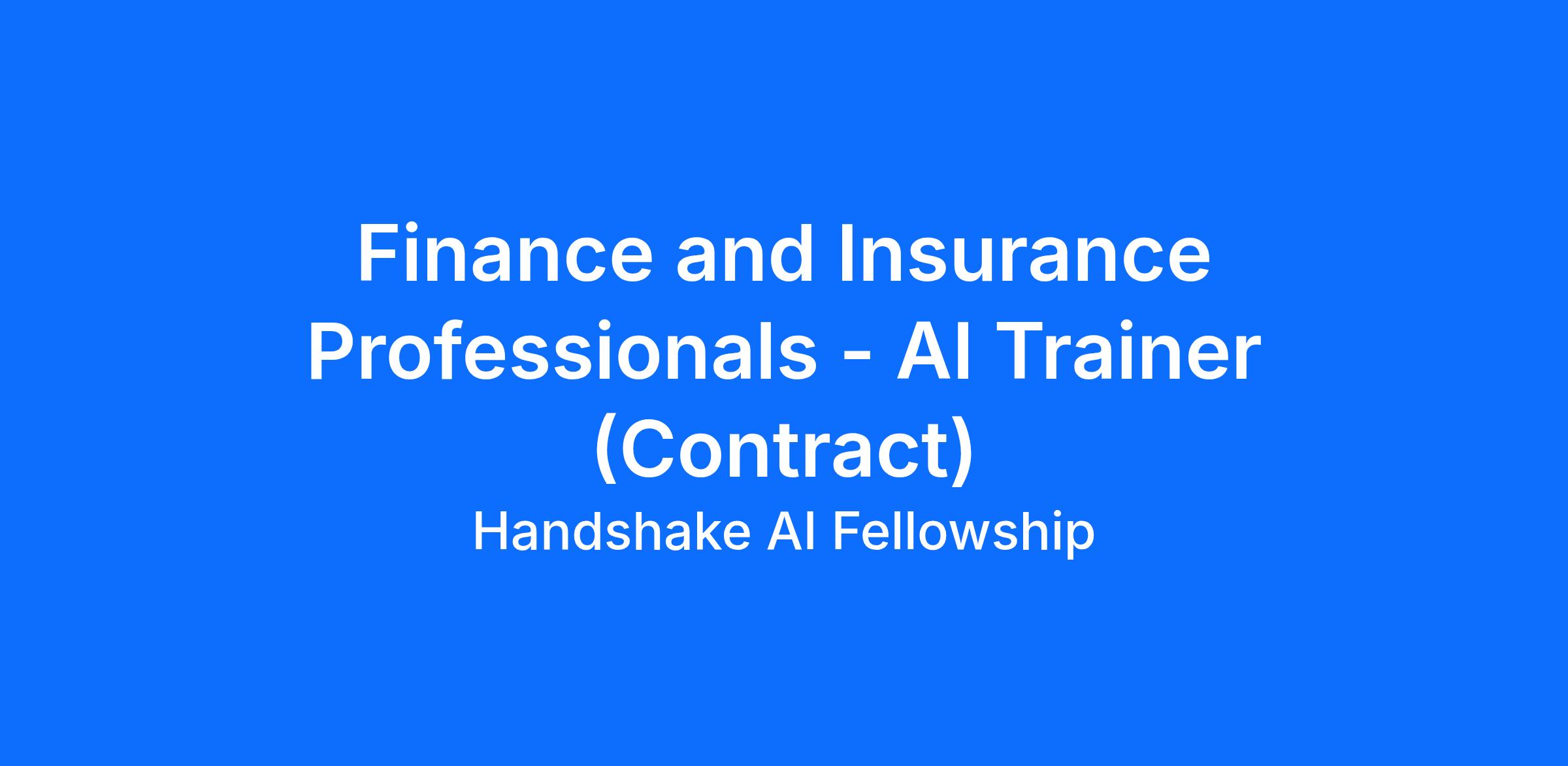 Handshake is recruiting Finance and Insurance Professionals to contribute to an AI research project. In this program, you’ll apply your expertise to help improve how AI understands real-world professional tasks and language. The Handshake AI program runs year-round, with project opportunities opening periodically across different areas of expertise.