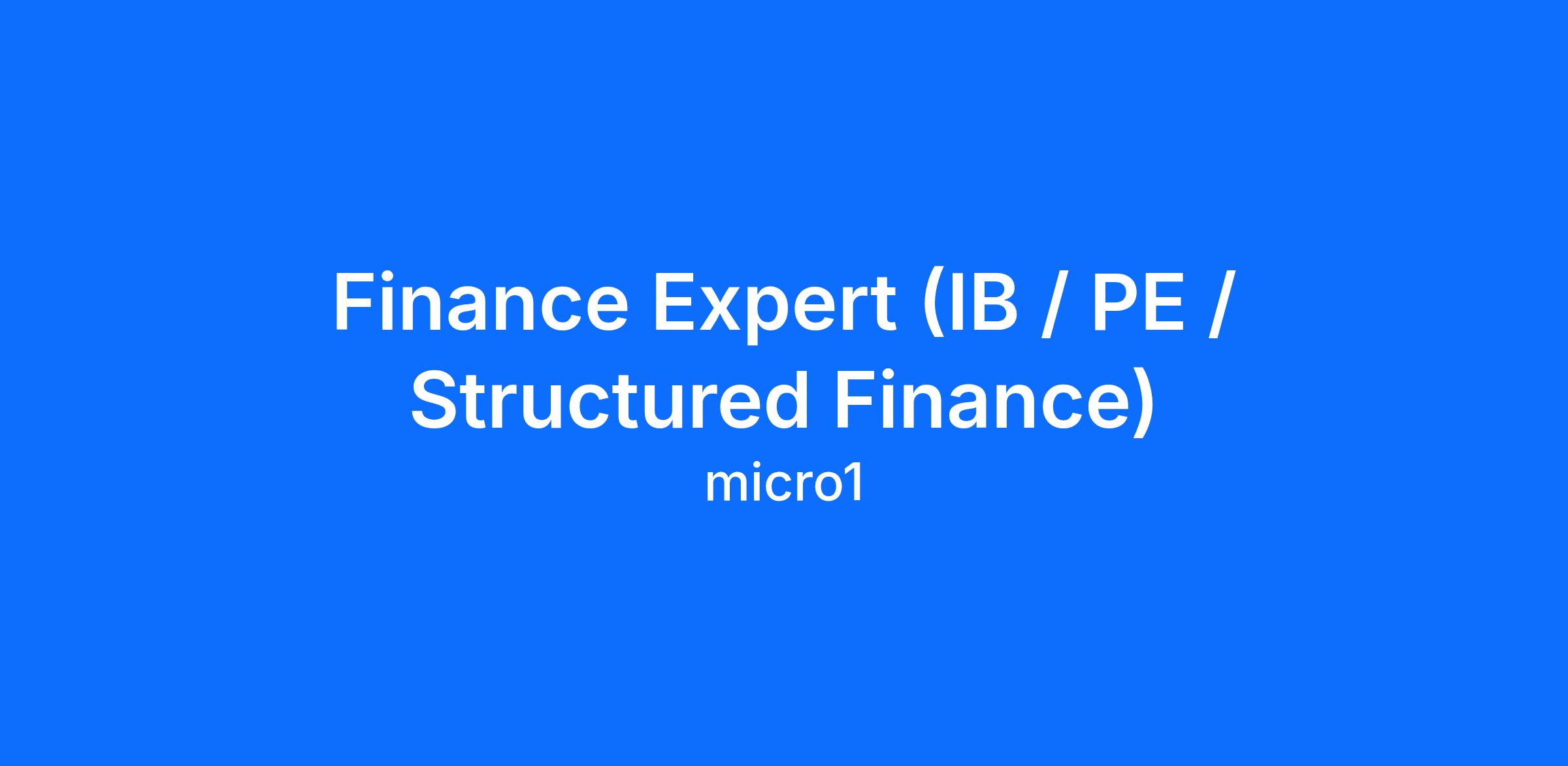 As a Finance Expert (IB / PE / Structured Finance), you will work directly with micro1's AI clients on tasks that require your specific expertise. This is flexible, remote contract work that fits around your existing schedule.