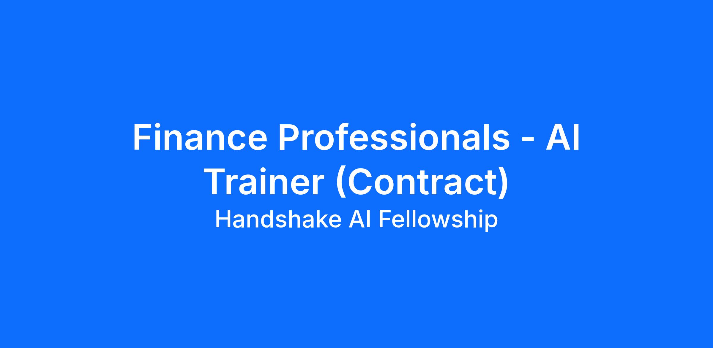 Handshake is seeking experienced Finance Professionals to support AI research through flexible, hourly contract work. This is not a traditional full-time corporate, banking, consulting, or investment role. You’ll use your real-world financial analysis, modeling, and advisory experience to evaluate AI-generated content and provide feedback that helps AI better understand financial concepts, quantitative reasoning, industry terminology, and professional communication.This is an ongoing, project-based opportunity that can be done alongside your primary employment.