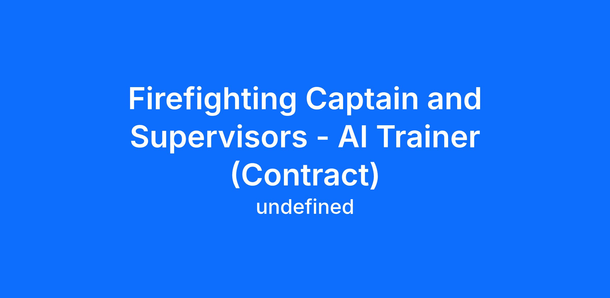 You have at least 4 years of professional experience in one or more of the following types of work.The examples below reflect the types of real-world responsibilities that you might have had in your role that will give you the context needed to evaluate and train high-quality AI modelsSupervise and coordinate the activities of firefighting and prevention workers, ensuring strategic deployment for effective rescue and fire suppression. Conduct training and drills in firefighting, medical care, and hazardous materials response, while maintaining equipment and evaluating personnel performance. Oversee compliance with fire safety codes and manage administrative duties, including budgeting and reporting.You’re able to participate in asynchronous work in partnership with leading AI labs.Application ProcessCreate a Handshake accountUpload your resume and verify your identityGet matched and onboarded into relevant projectsStart working and earning