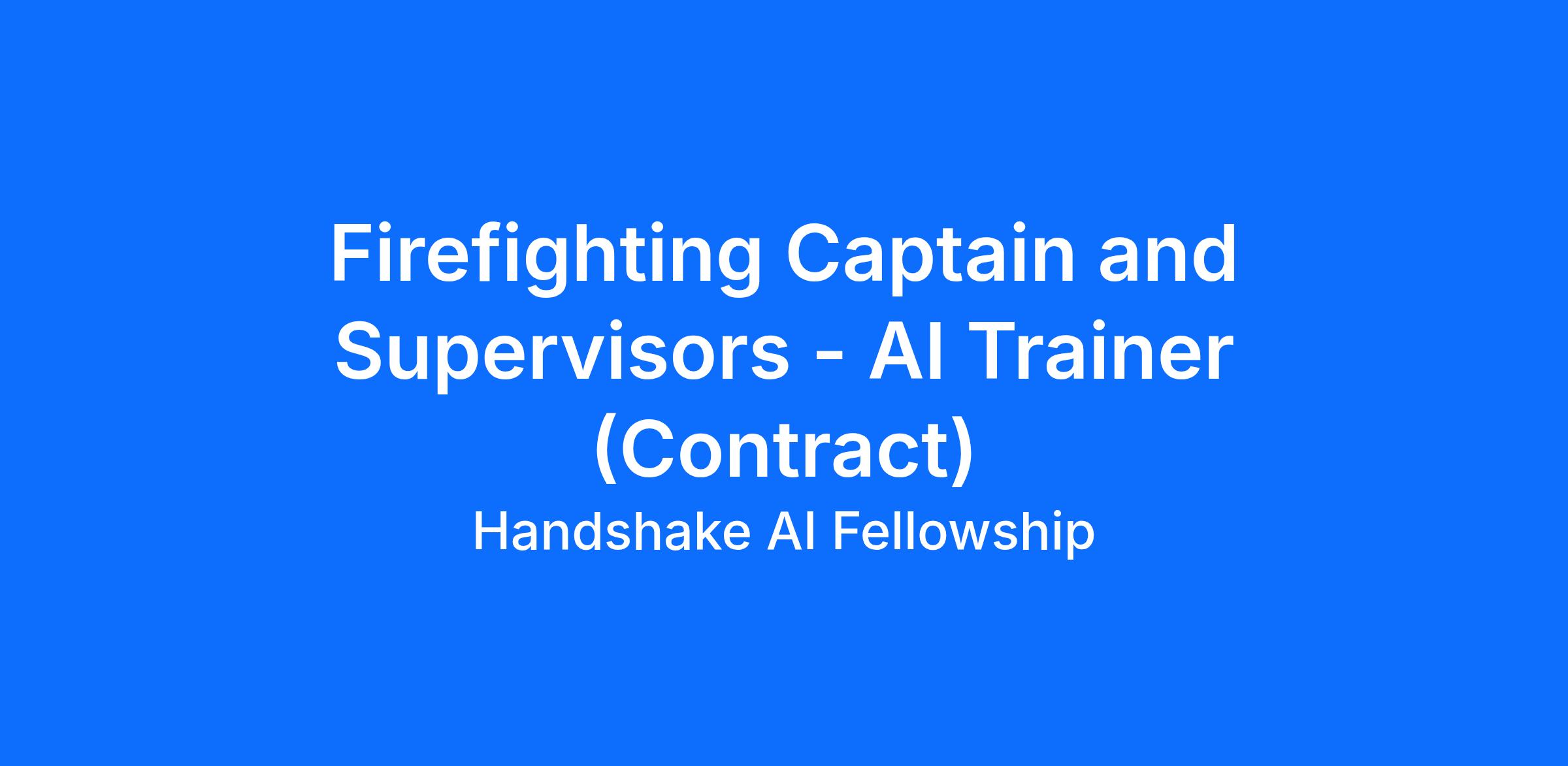 You have at least 4 years of professional experience in one or more of the following types of work.The examples below reflect the types of real-world responsibilities that you might have had in your role that will give you the context needed to evaluate and train high-quality AI modelsSupervise and coordinate the activities of firefighting and prevention workers, ensuring strategic deployment for effective rescue and fire suppression. Conduct training and drills in firefighting, medical care, and hazardous materials response, while maintaining equipment and evaluating personnel performance. Oversee compliance with fire safety codes and manage administrative duties, including budgeting and reporting.You’re able to participate in asynchronous work in partnership with leading AI labs.Application ProcessCreate a Handshake accountUpload your resume and verify your identityGet matched and onboarded into relevant projectsStart working and earning