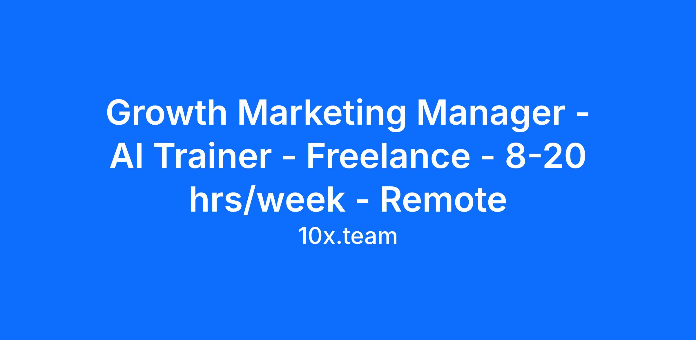Join 10x Team as a freelance Growth Marketing Manager – AI Trainer. Help develop and enhance AI systems used by leading organizations by ensuring their responses and strategies accurately reflect real-world growth marketing best practices.