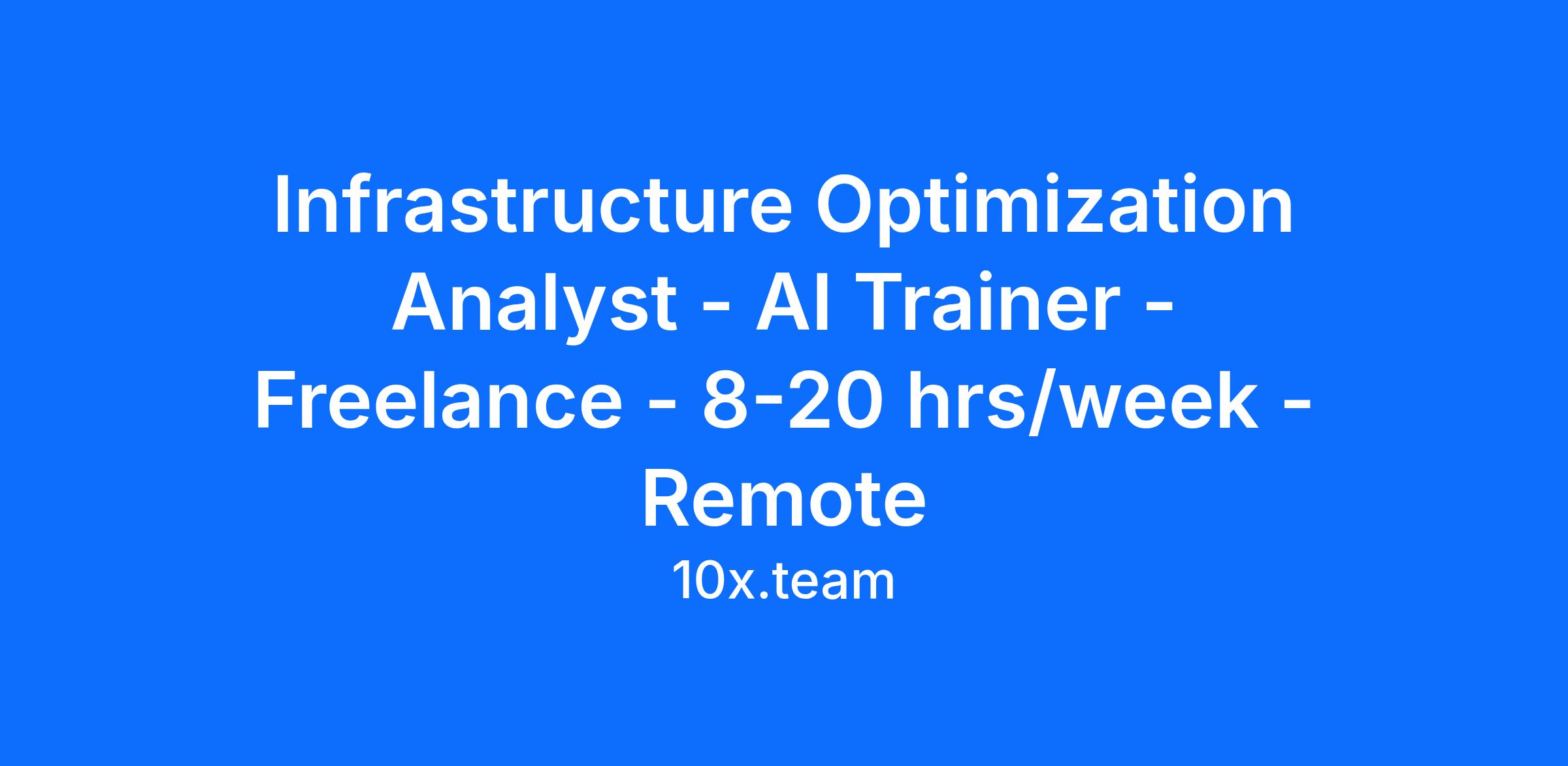 Are you an experienced infrastructure optimization professional passionate about shaping the future of AI for modern IT operations and cloud environments? Join 10x Team as a freelance AI Trainer, leveraging your expertise to develop AI tools that reflect genuine infrastructure management practices and challenges.