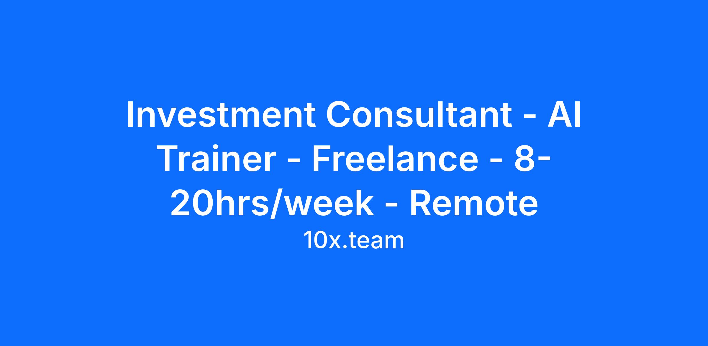 Are you an experienced investment professional looking to apply your expertise in an innovative technology context? Do you have 8 to 20 hours per week available alongside your existing projects or consulting commitments?