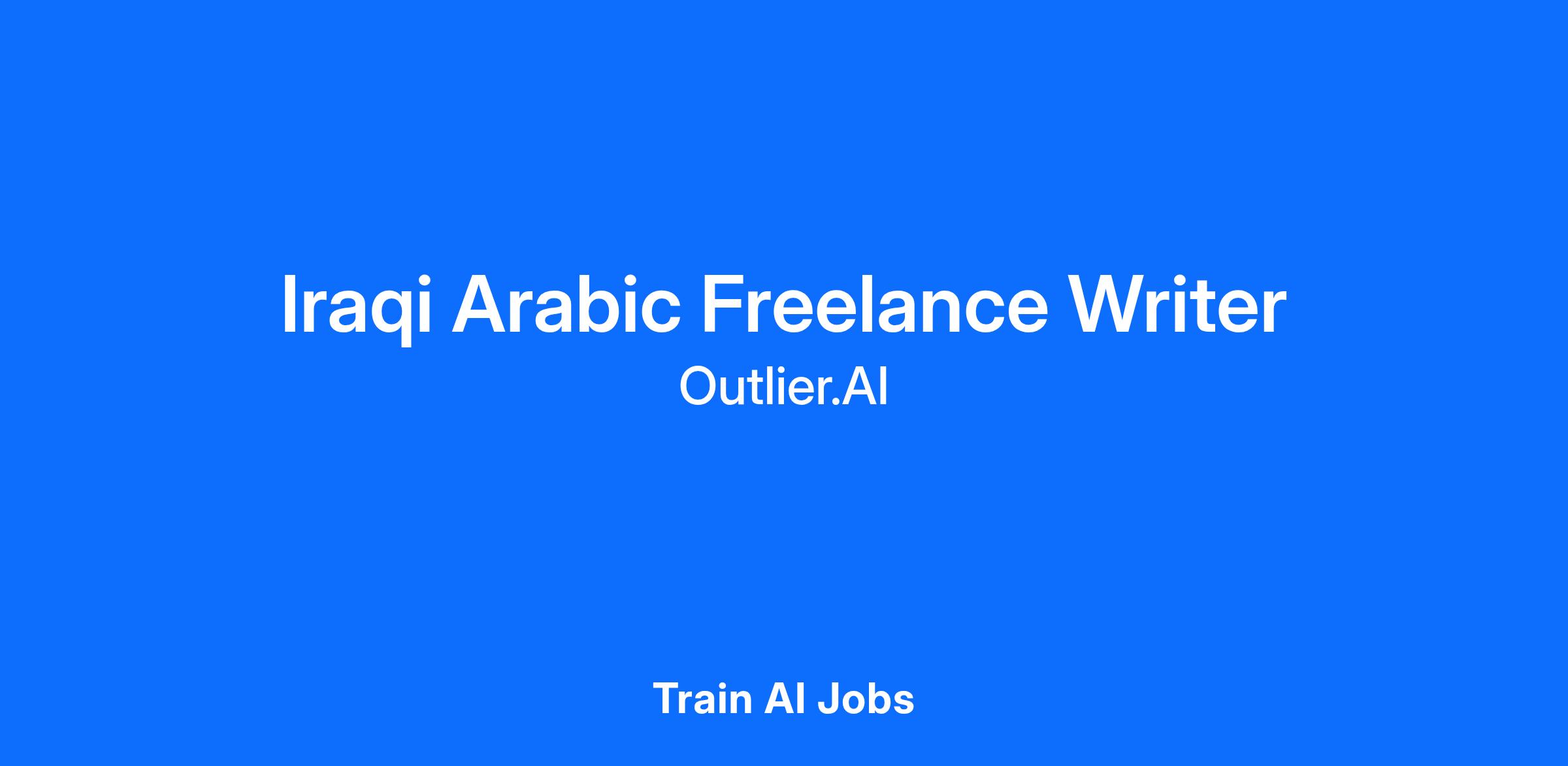 - Outlier is looking for talented writers with fluency in Iraqi Arabic to help train generative artificial intelligence models