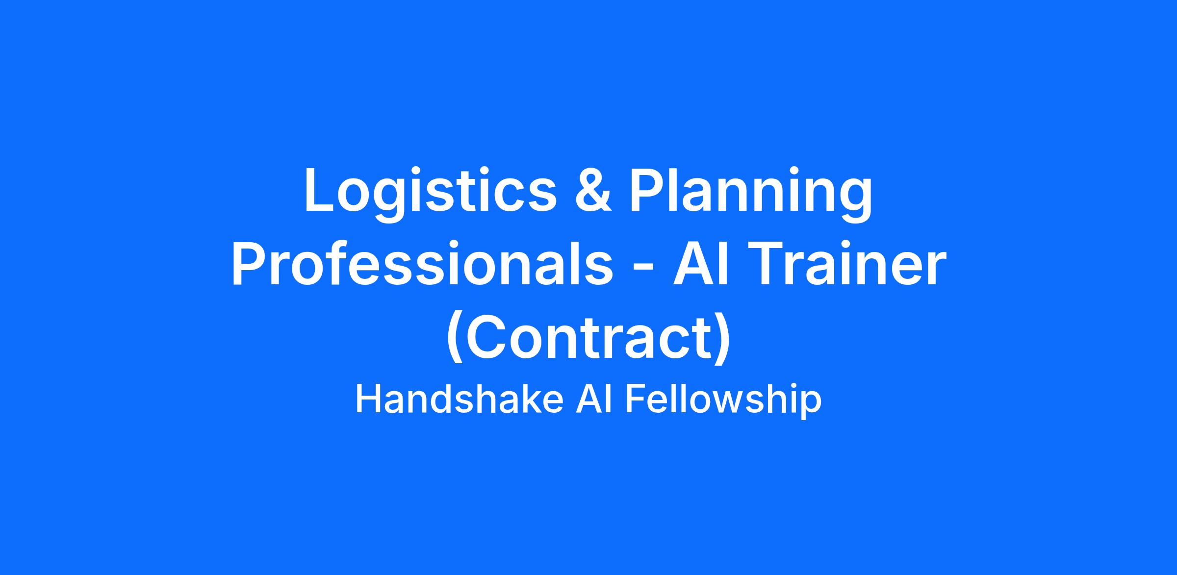 Handshake is recruiting Logistics and Planning Professionals to contribute to an AI research project. In this program, you’ll apply your expertise to help improve how AI understands real-world professional tasks and language. The Handshake AI program runs year-round, with project opportunities opening periodically across different areas of expertise.