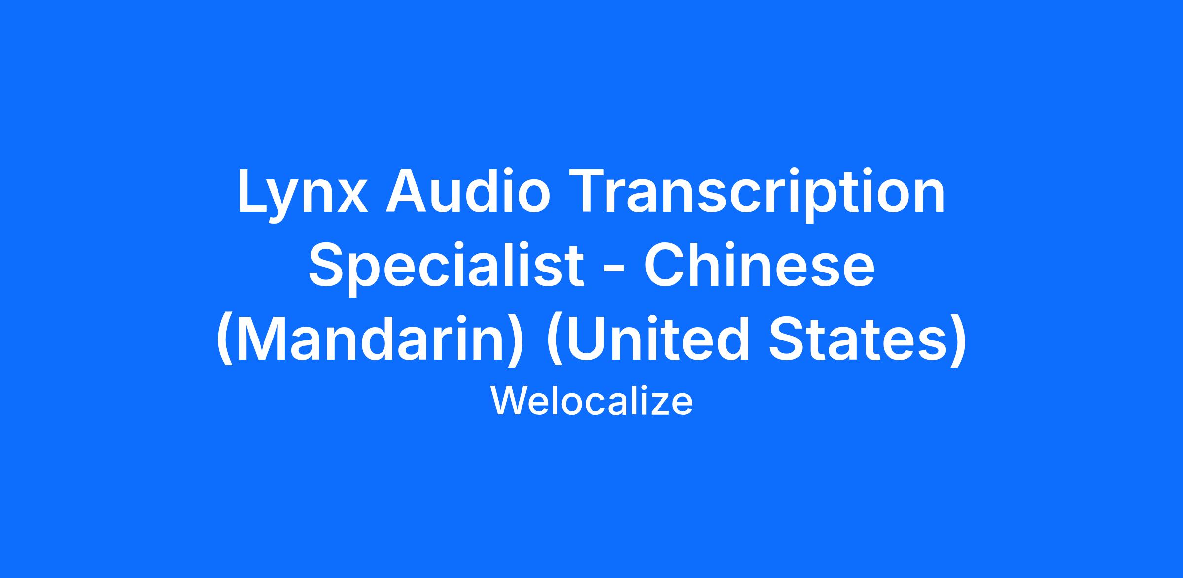 Lynx Audio Transcription Specialist - Chinese (Mandarin) (United States)