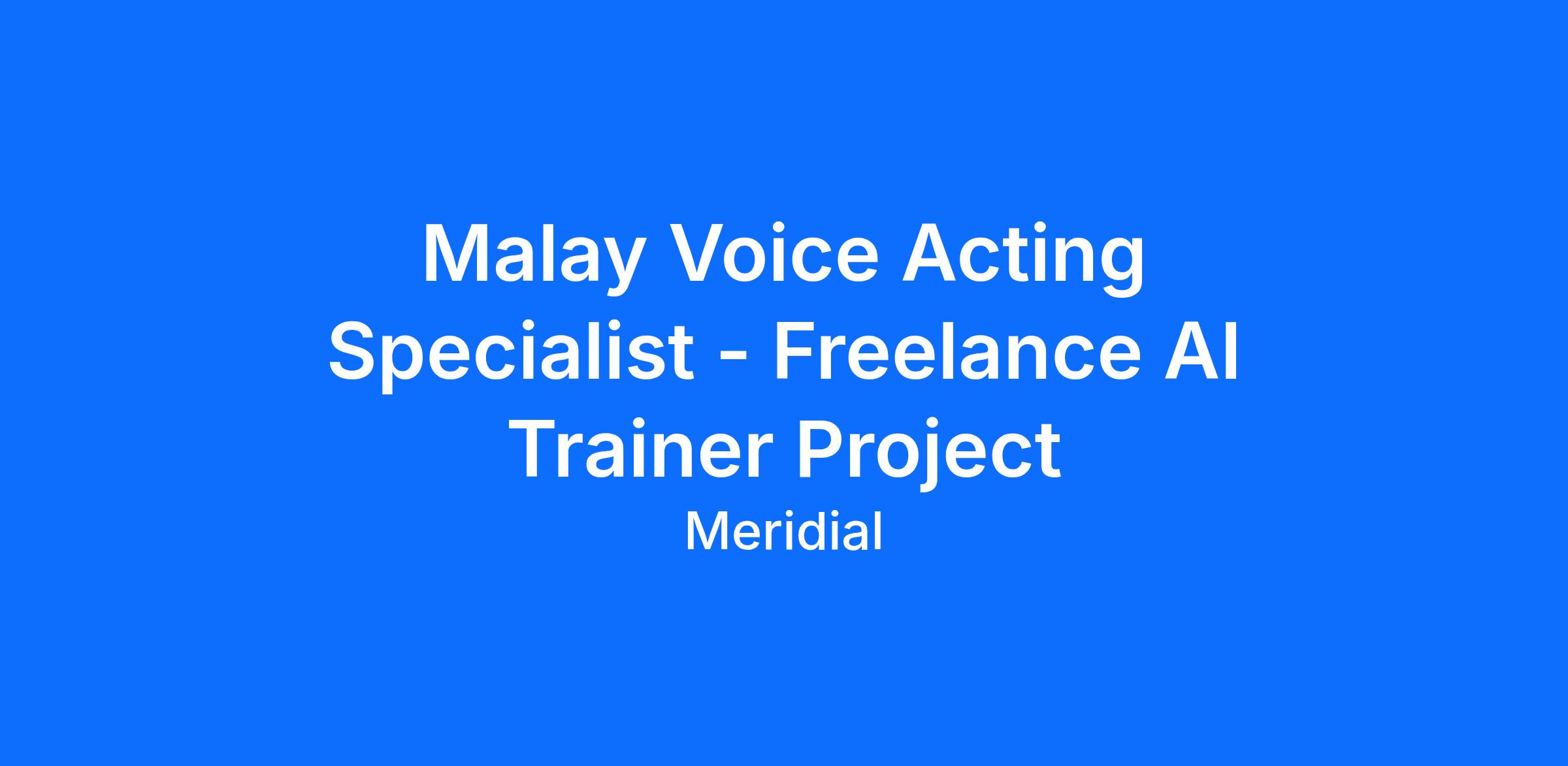 Job title: Malay Voice Acting Specialist – AI Trainer