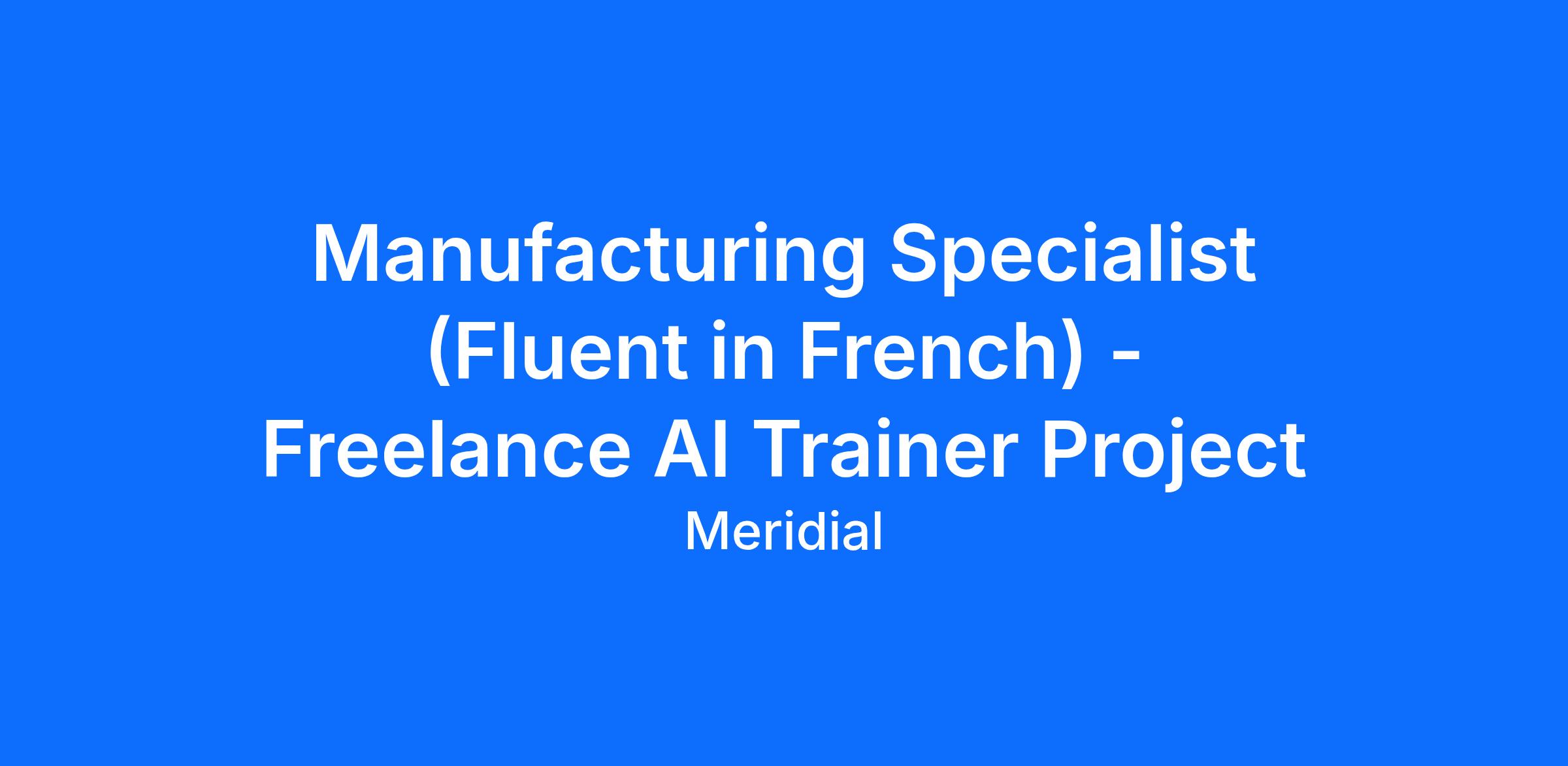 Job title: Manufacturing Specialist (Fluent in French) – AI Trainer