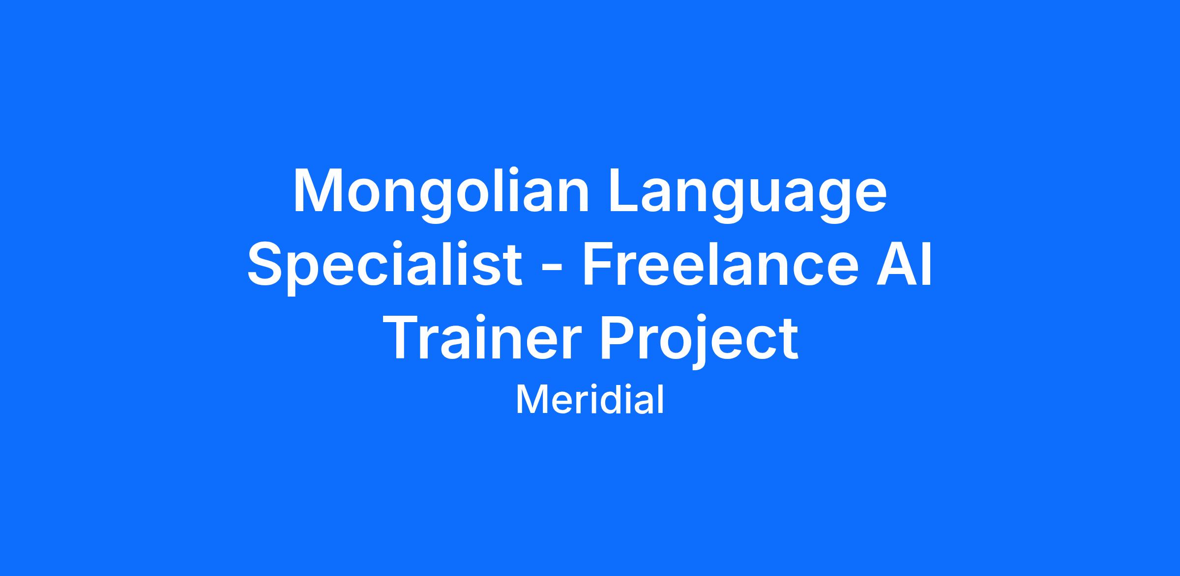 Fluency in Mongolian is required, along with demonstrated experience in translation, linguistics, language teaching, editing, or related professional work. Experience in training, coaching, or linguistic annotation is a plus. Clear communication skills, cultural knowledge, and attention to detail are essential.