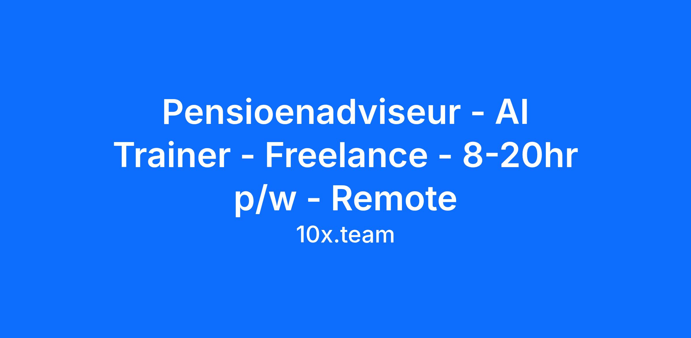 Pensioenadviseur - AI Trainer - Freelance - 8-20hr p/w - Remote