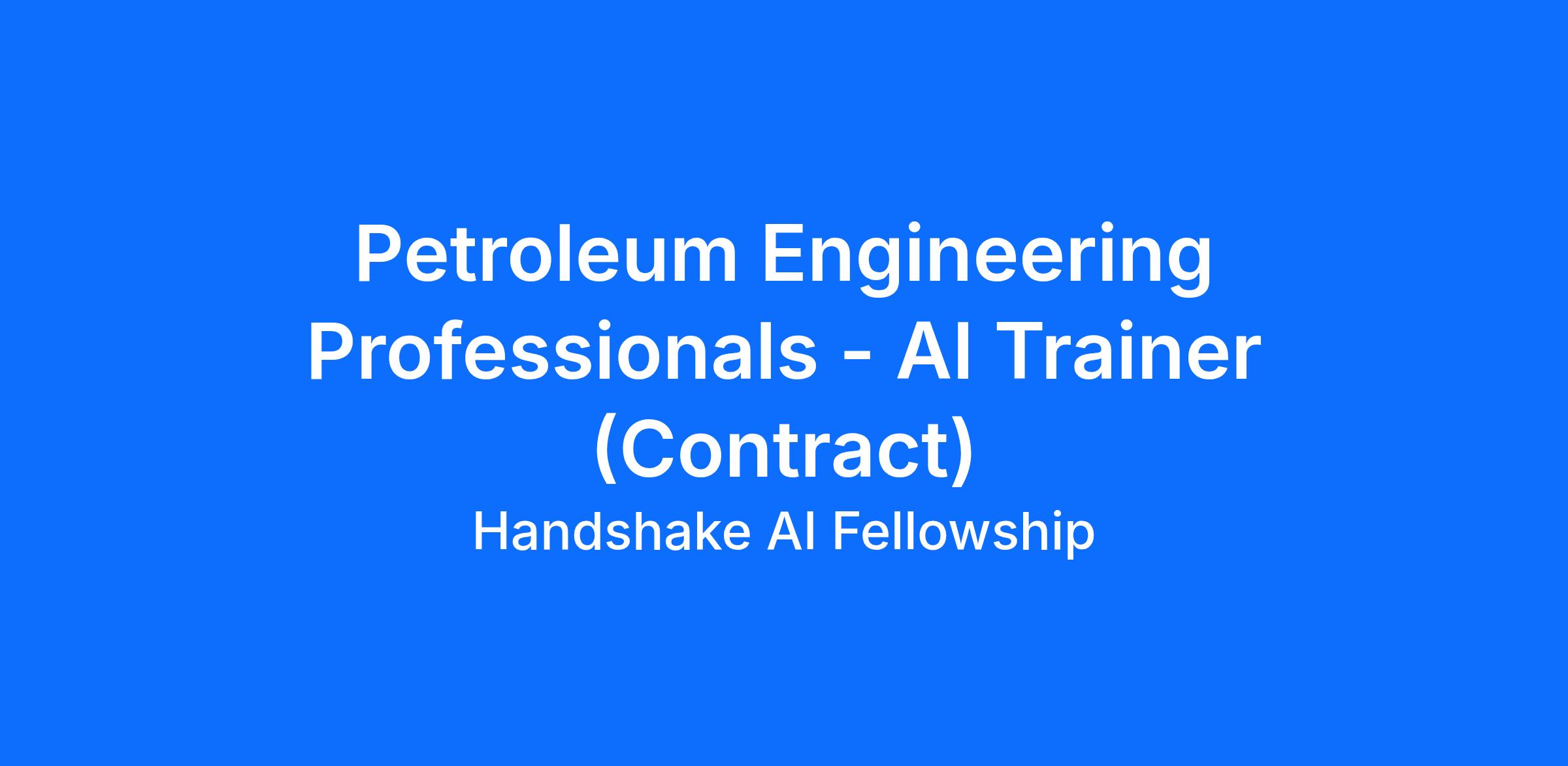 Handshake is recruiting Petroleum Engineering Professionals to contribute to an hourly, temporary AI research project—but there’s no AI experience needed. In this program, you’ll leverage your professional experience to evaluate what AI models produce in your field, assess content related to your field of work, and deliver clear, structured feedback that strengthens the model’s understanding of your workplace tasks and language. The Handshake AI opportunity runs year-round, with project opportunities opening periodically across different areas of expertise.