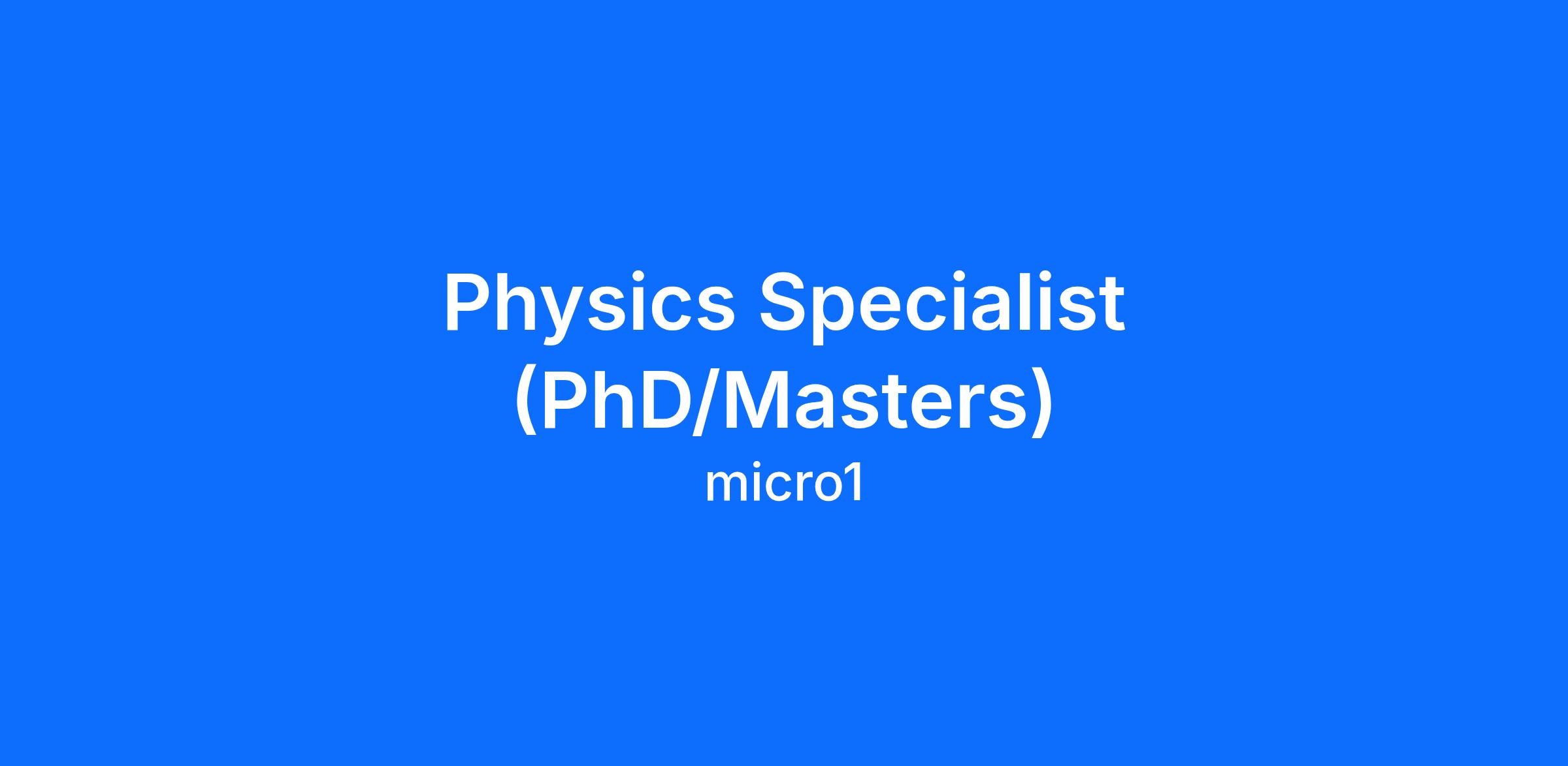 micro1 is a Silicon Valley AI company that connects domain experts with leading AI labs and enterprises for high-value contract work. This is a Physics role focused on training and improving AI models.