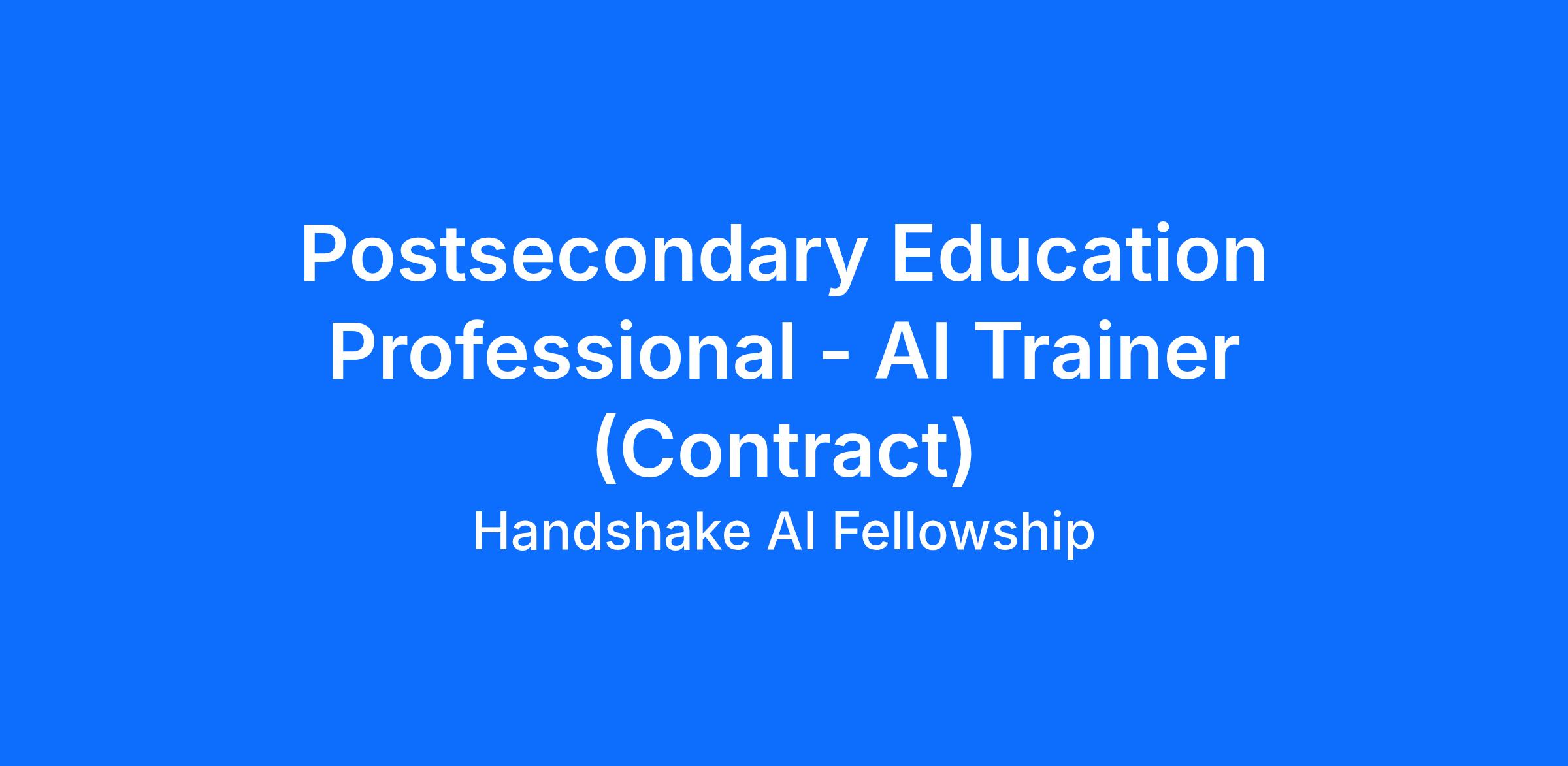 Handshake is recruiting Postsecondary Education Professionals to contribute to an AI research project. In this program, you’ll apply your expertise to help improve how AI understands real-world professional tasks and language. The Handshake AI program runs year-round, with project opportunities opening periodically across different areas of expertise.