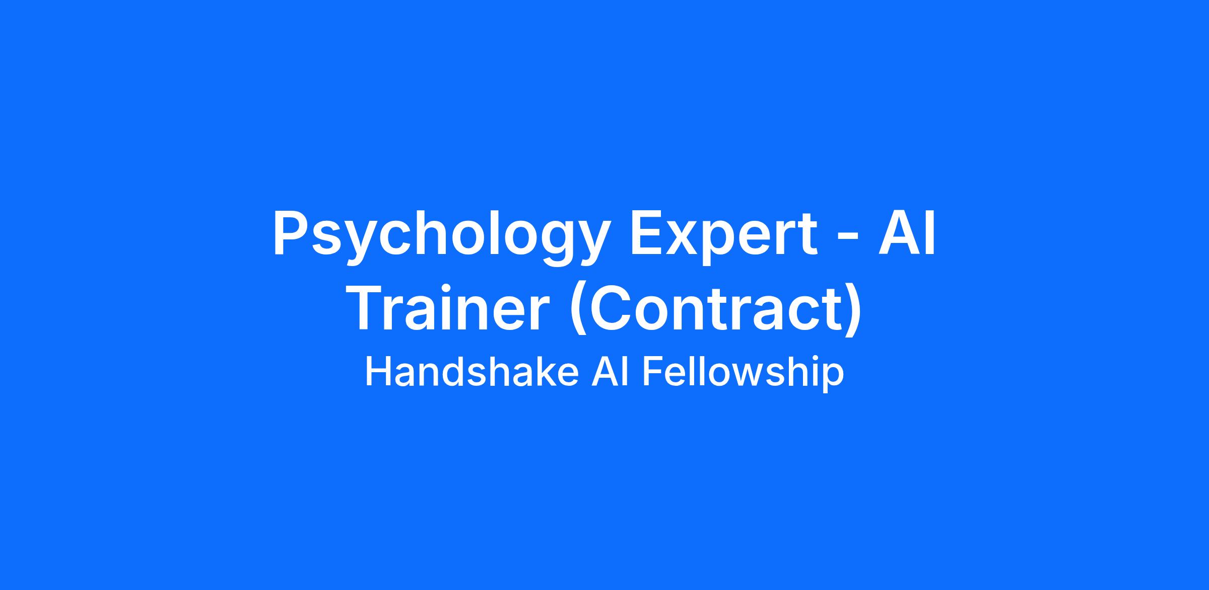 Handshake is recruiting exceptional master students and graduates in Psychology to join our AI research community. This program brings subject-matter experts together to enhance the capabilities of Large Language Models (LLMs) within specialized domains and subdomains. The Handshake AI Fellowship program runs year-round, though project availability will vary by domain.