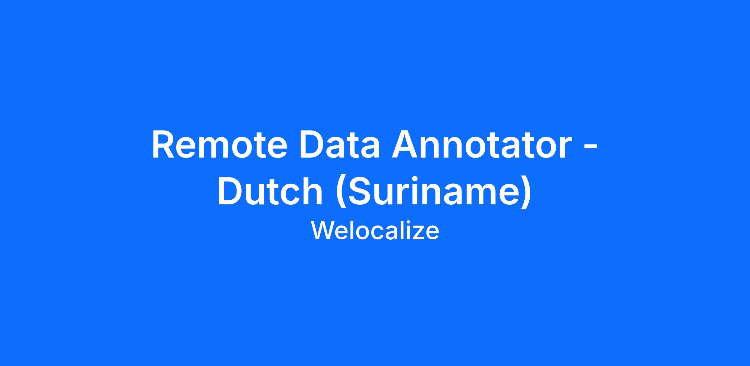 Are you tech-savvy? Have a passion for quality? We are looking for a Dutch-speaking Data Rater, based in Suriname, to work on projects to advance AI technologies. Join us for a unique chance to kickstart your career in the AI field!