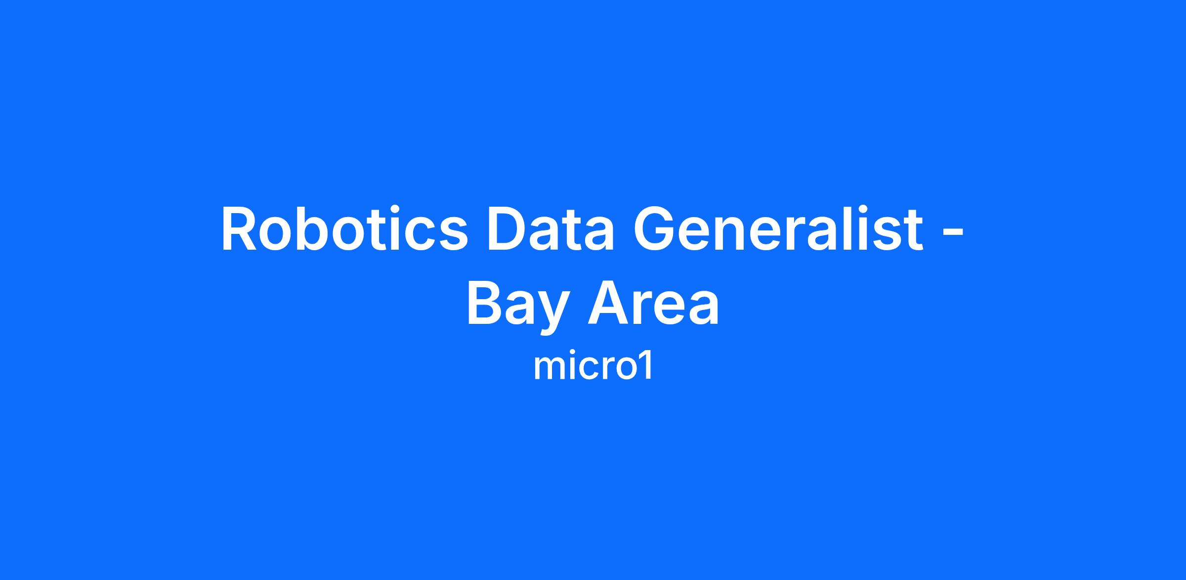 As a Robotics Data Generalist - Bay Area, you will work on cutting-edge robotics and physical AI data collection. This involves capturing real-world movement and interaction data to train embodied AI systems — the next frontier in artificial intelligence.