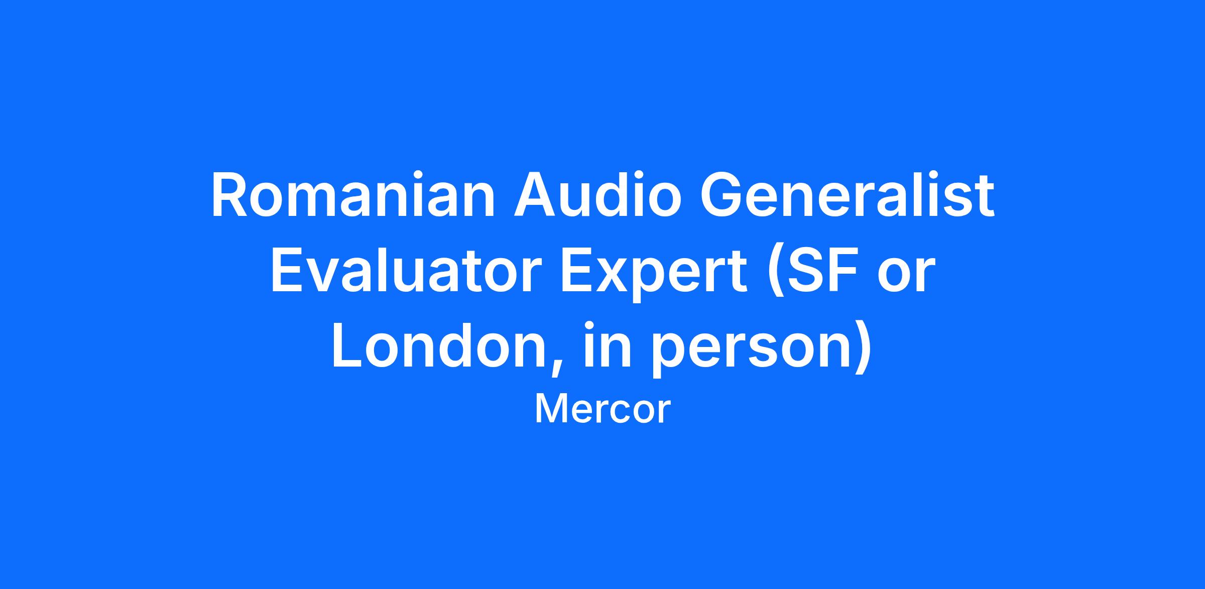 As a Romanian Audio Generalist Evaluator Expert (SF or London, in person), you will work on AI training tasks that leverage your domain expertise. This includes evaluating AI-generated responses, providing expert feedback, and helping improve AI model accuracy in your field.