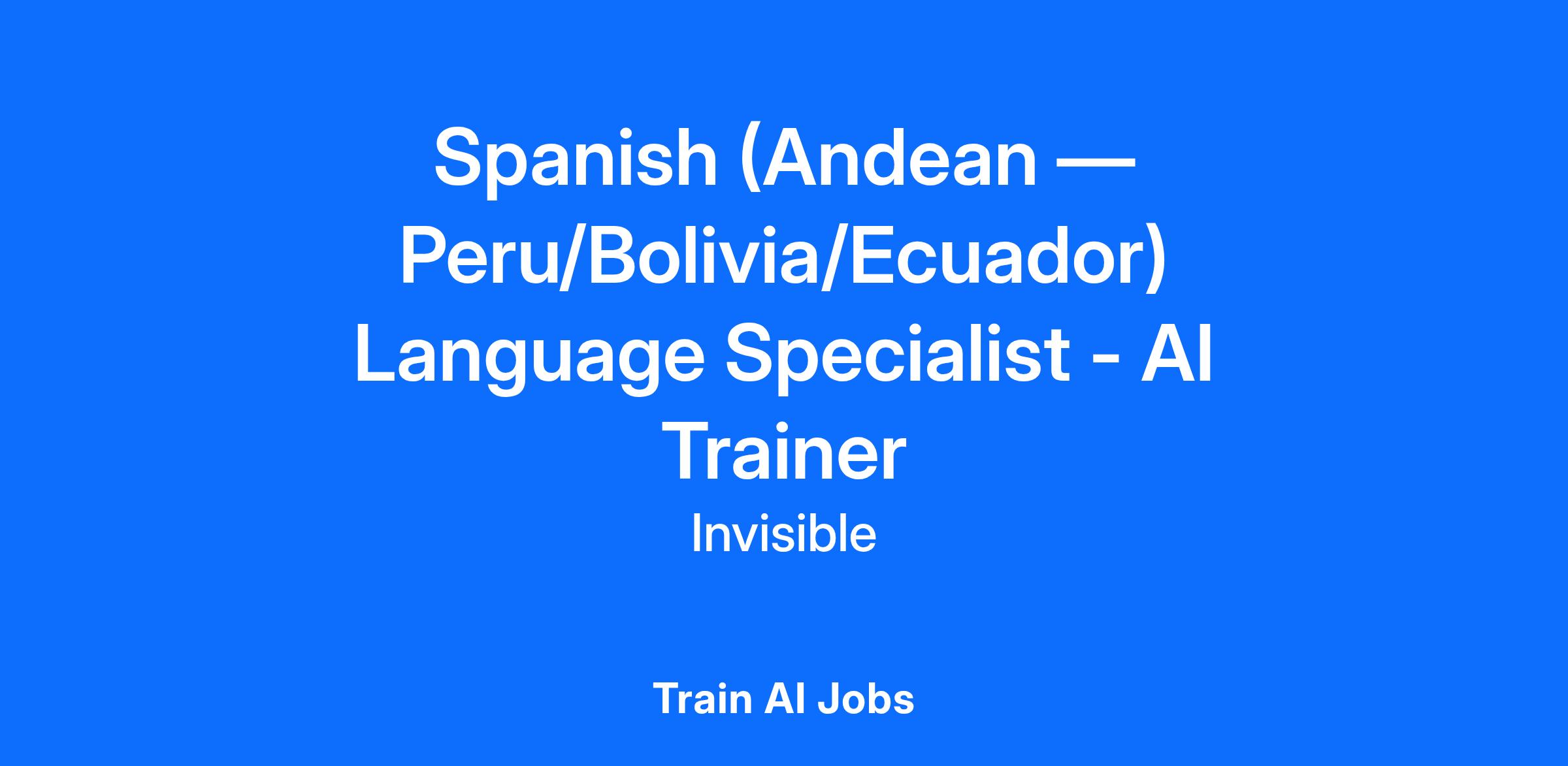Job title: Spanish (Andean — Peru/Bolivia/Ecuador) Language Specialist - AI Trainer