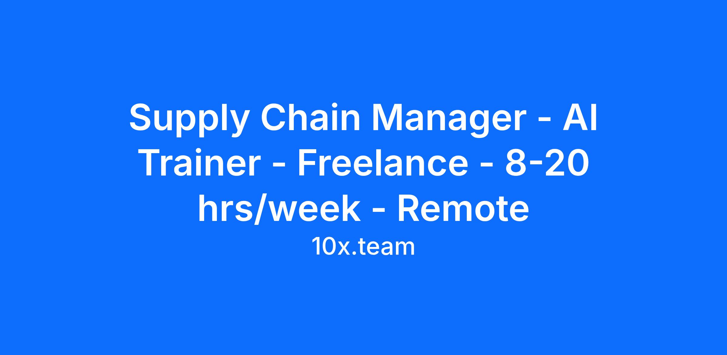 Are you an experienced supply chain professional passionate about applying your expertise to the next generation of AI solutions? Join 10x Team as a freelance AI Trainer and help develop AI tools that reflect real-world supply chain management challenges, processes, and best practices.