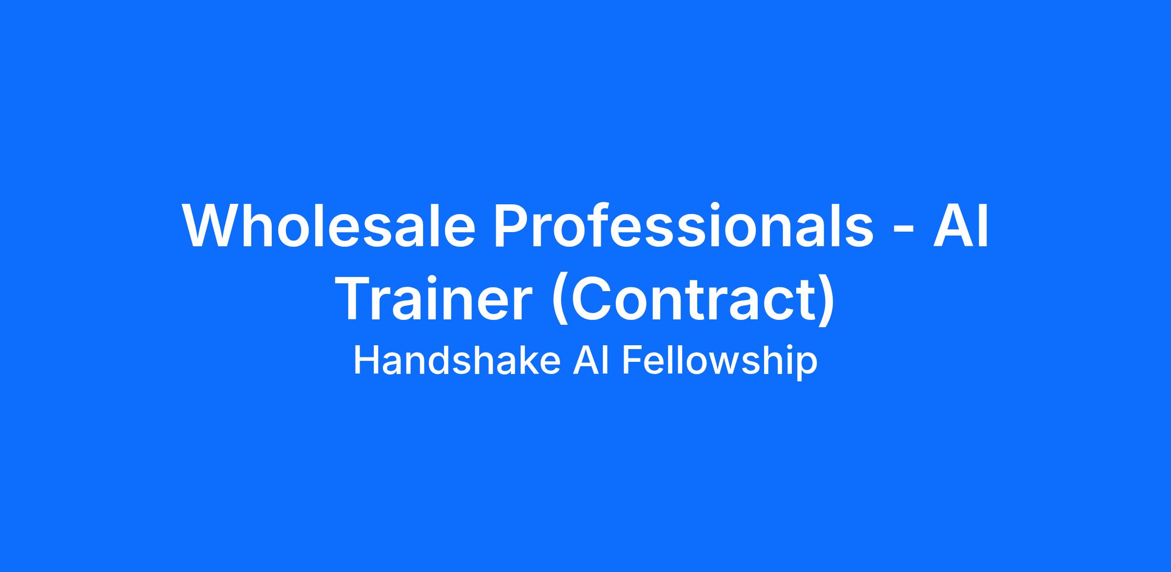 Handshake is recruiting Wholesale Professionals to contribute to an AI research project. In this program, you’ll apply your expertise to help improve how AI understands real-world professional tasks and language. The Handshake AI program runs year-round, with project opportunities opening periodically across different areas of expertise.